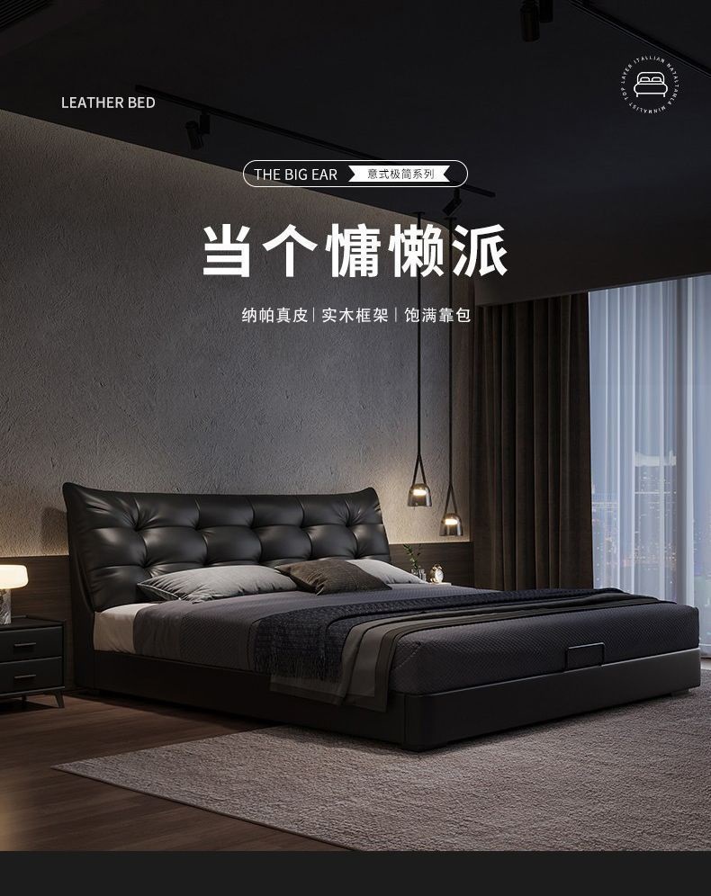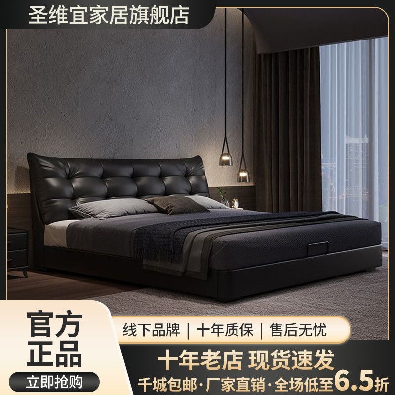 모던하고 심플한 1.8 더블 가죽 라이트 럭셔리 더블 침대 마스터 침실 1.5 이탈리안 하이 엔드 웨딩 침대 마스터 침실 대형 침대스토어 가기