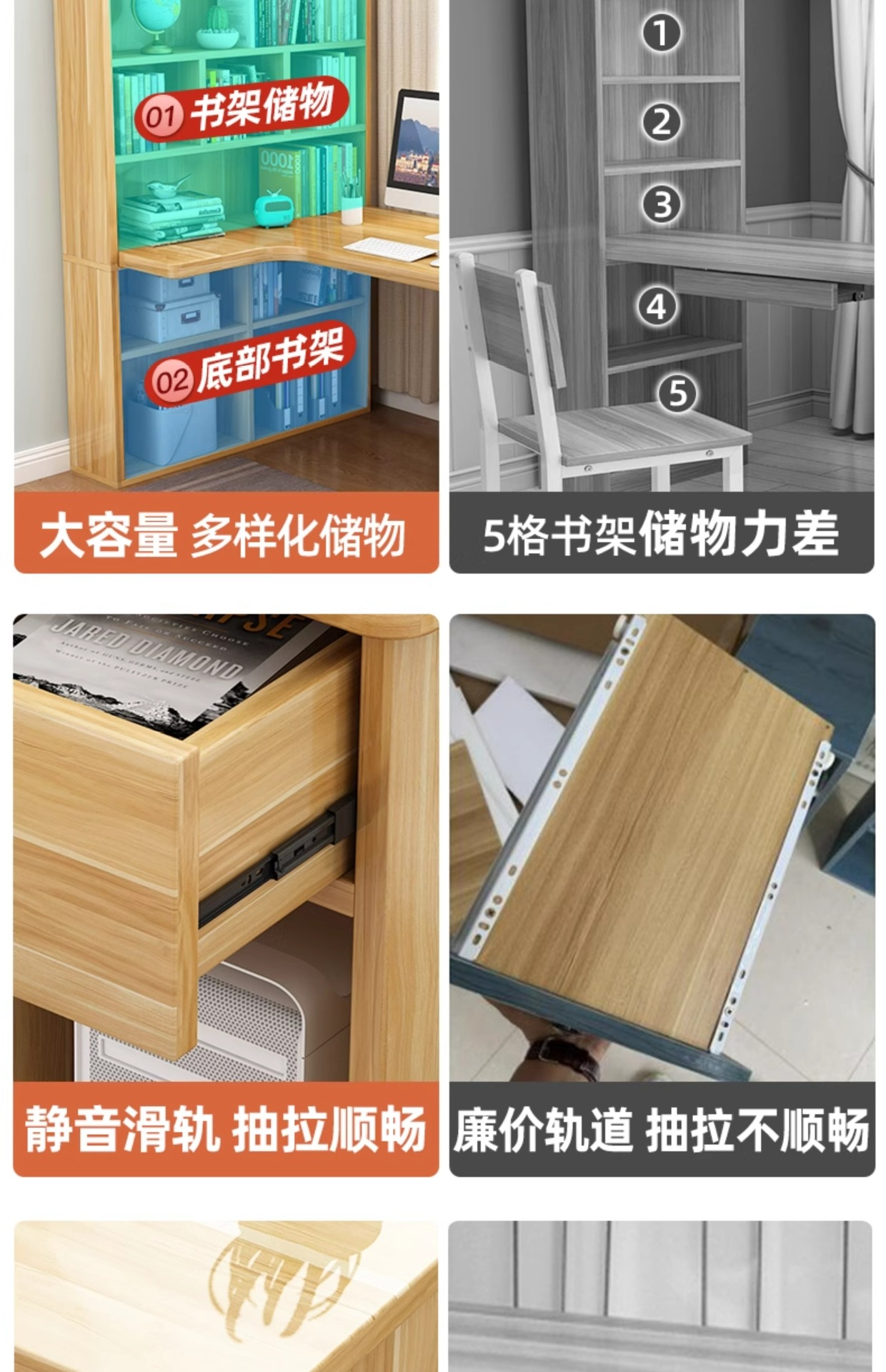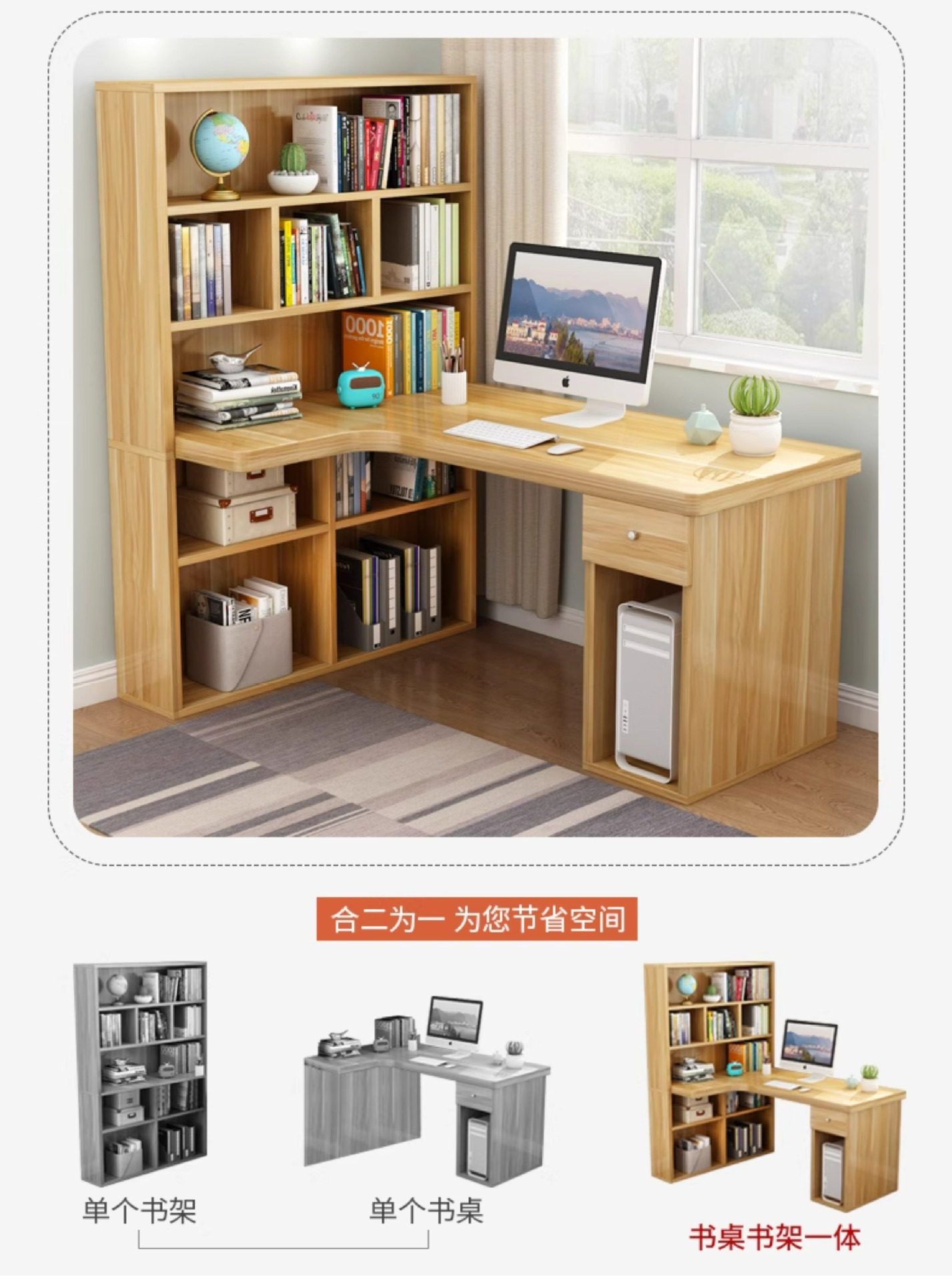 컴퓨터 데스크탑 테이블 코너 책상 책장 조합 간단한 가정용 침실 학생 학습 테이블 쓰기 jω