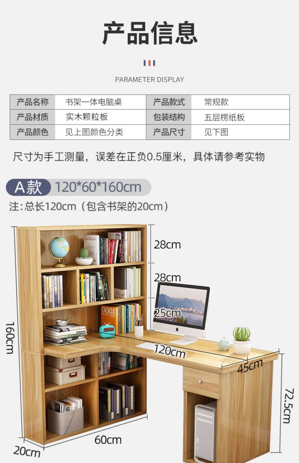 컴퓨터 데스크탑 테이블 코너 책상 책장 조합 간단한 가정용 침실 학생 학습 테이블 쓰기 jω스토어 가기