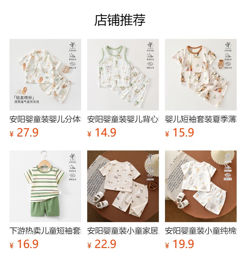 Anyang 유아 및 아동 의류 유아 반팔 반바지 정장 가정 의류 유아 의류 여름 얇은 이중 목적 가랑이 잠옷스토어 가기