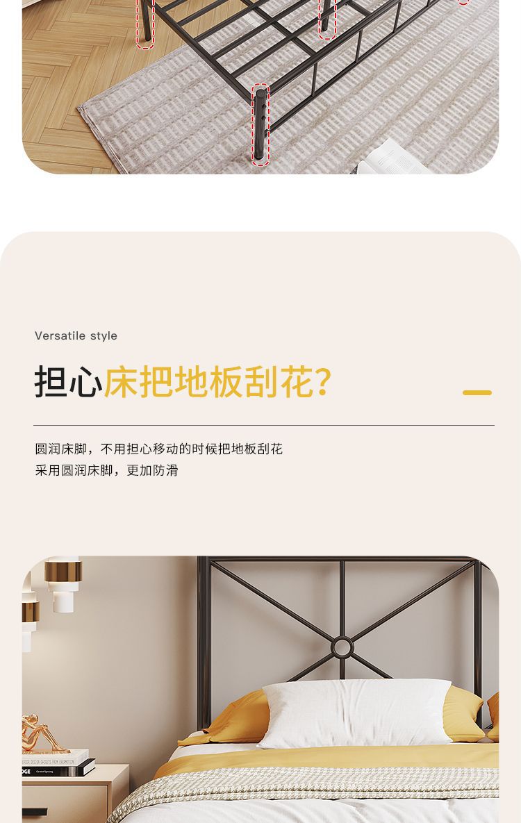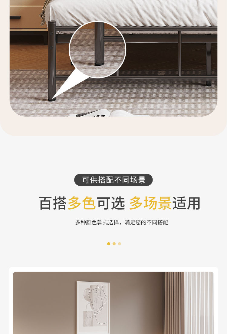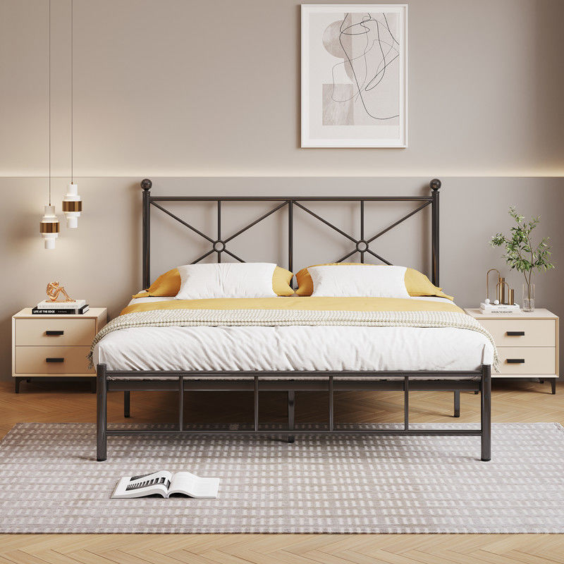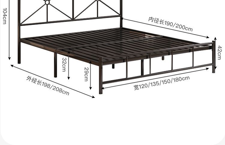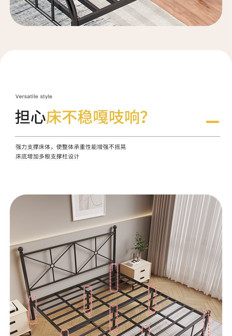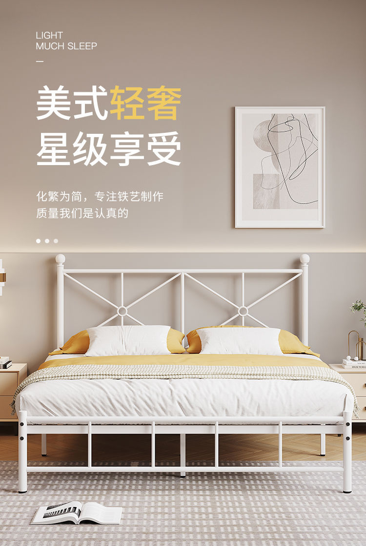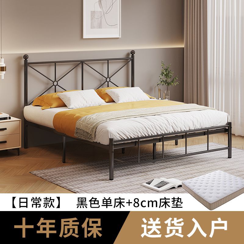 현대적인 심플한 더블 철제 침대 임대 주택 싱글 철제 침대 간단한 철제 프레임 침대 B&B 아파트 금속 침대 두꺼운스토어 가기