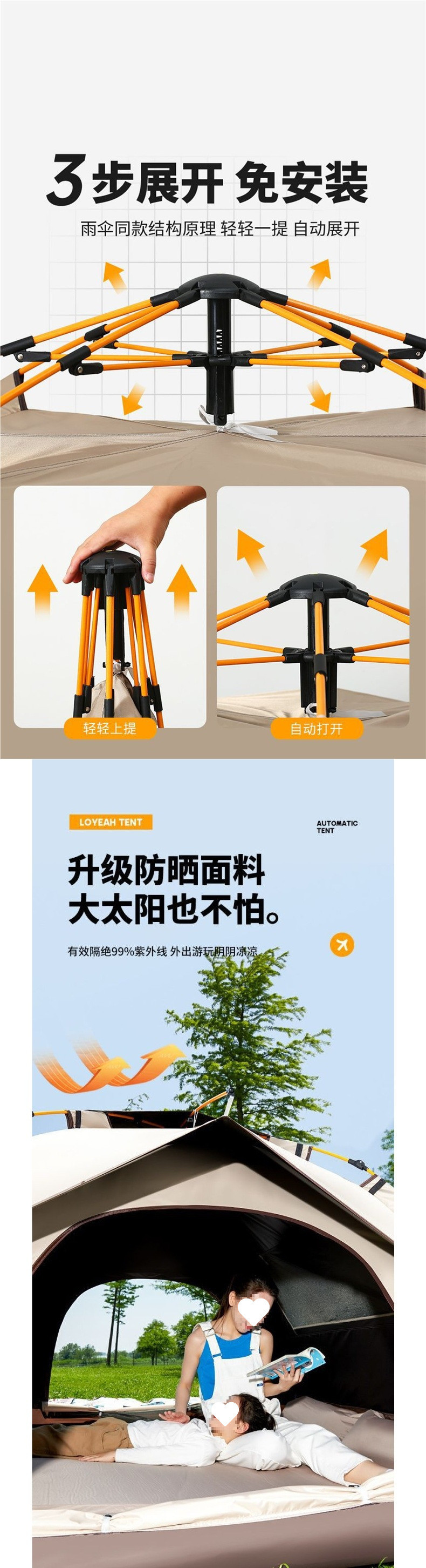 T6F 텐트 야외 접이식 휴대용 캠핑 풀 세트 장비 및 용품 캠핑 밤 피크닉 천막 원클릭