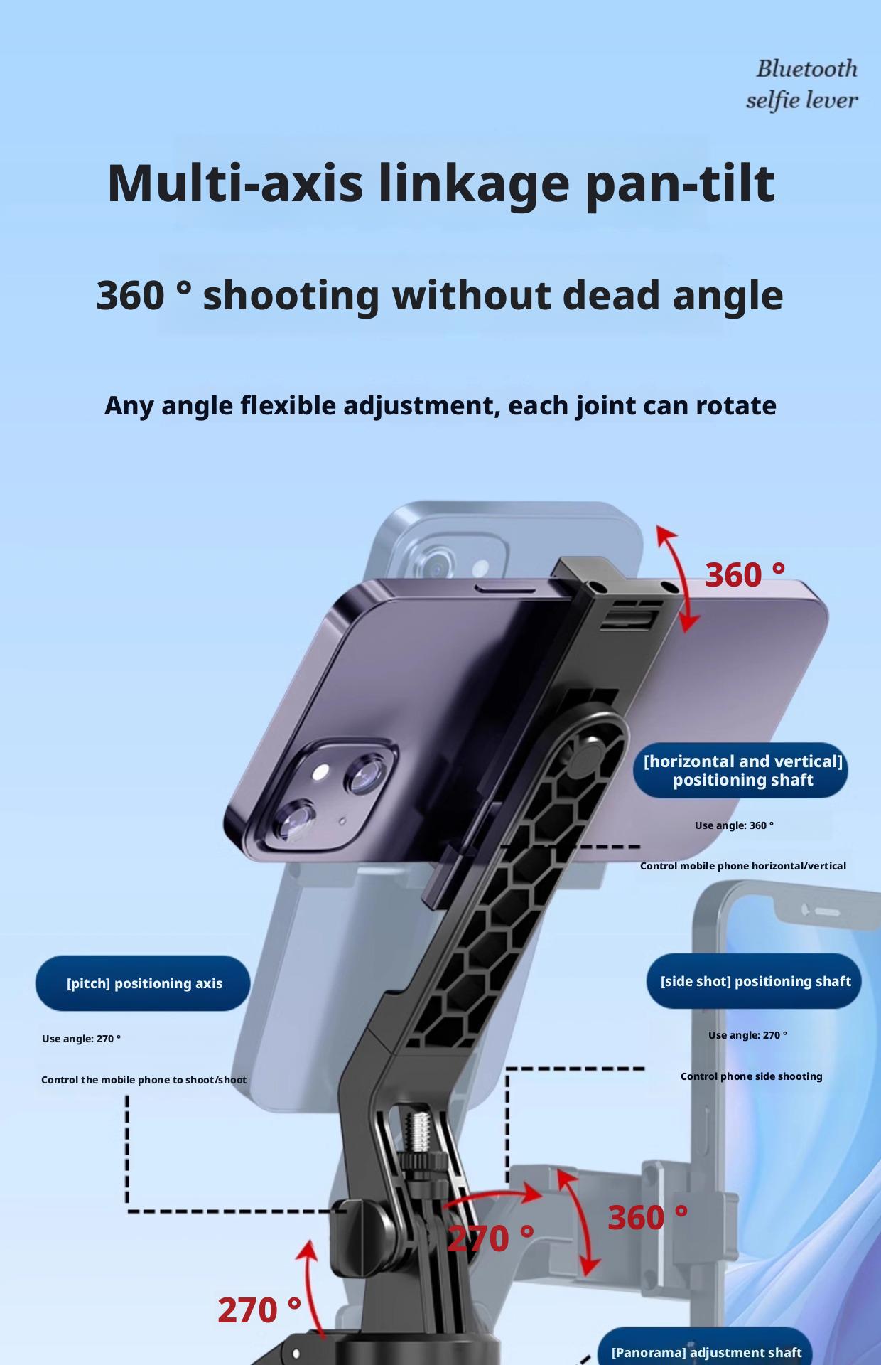 C12 스마트 페이스 트레킹 짐벌 손떨림 방지 셀카봉 2.16m ° 자동 회전 일체형 4피트 브래킷