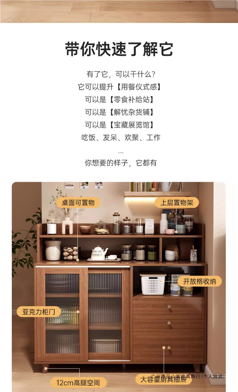 • (월넛컬러 + 높이높은수납선반) 아크릴 미닫이 찬장 (1200*360*1250mm)