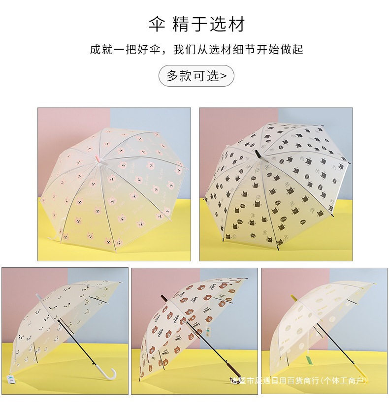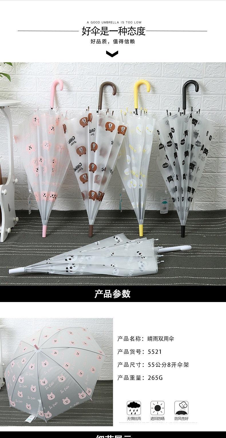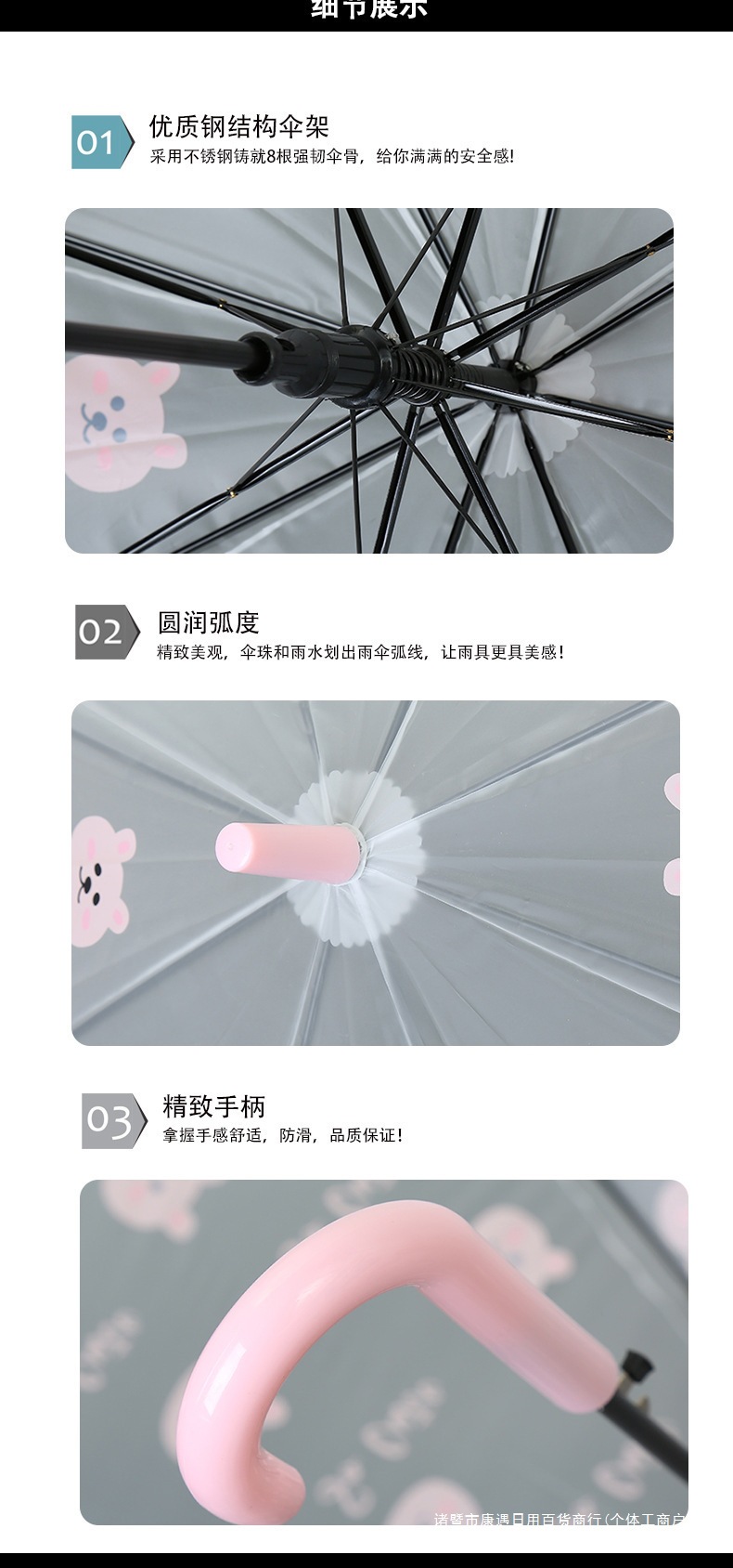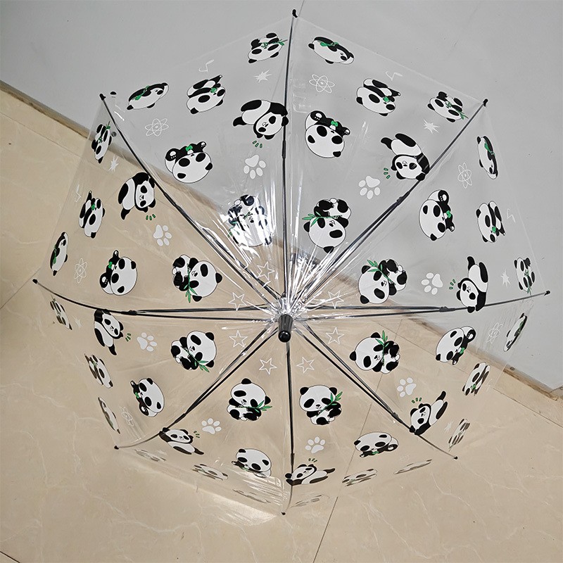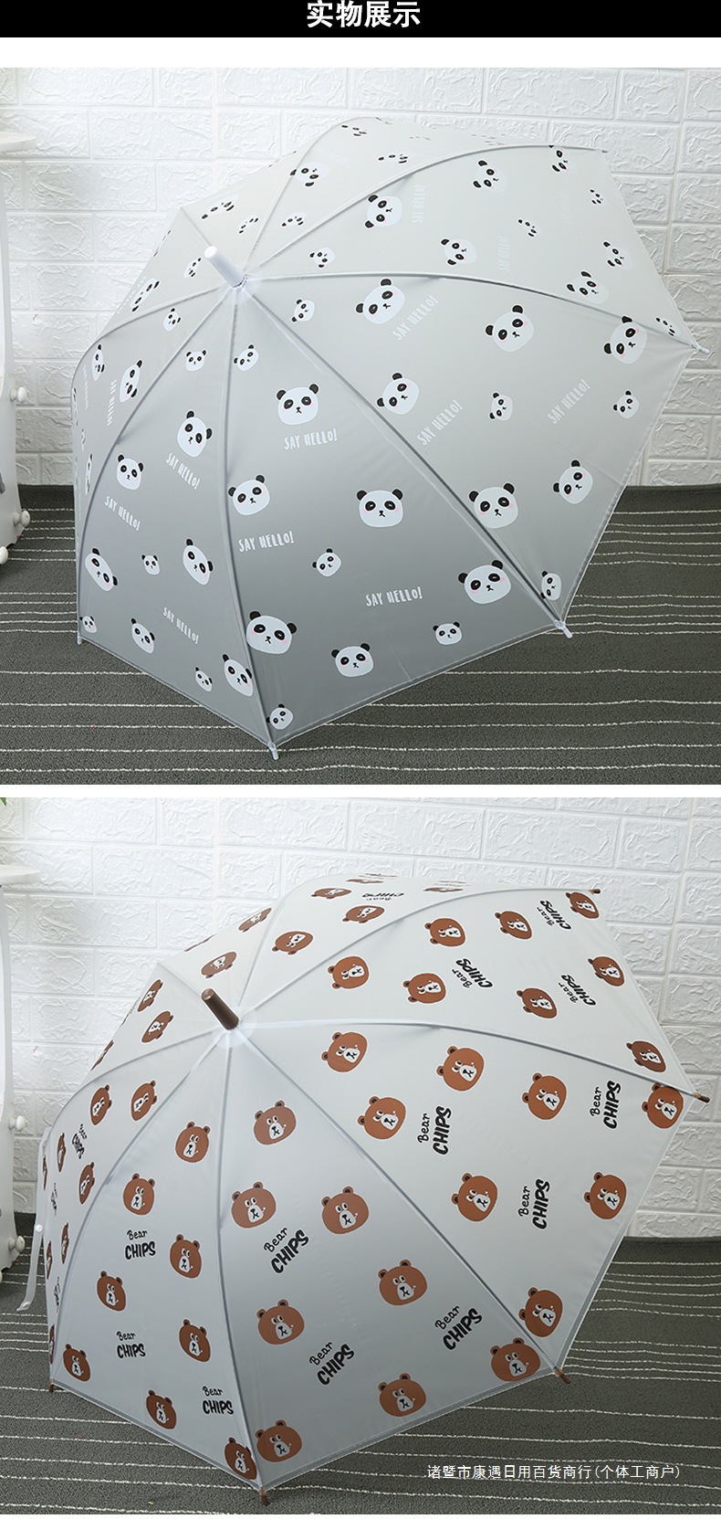 팬더 우산 도매 긴 우산 비 또는 빛 만화 우산 손잡이 스트레이트 바 두꺼운 야외 투명 우산스토어 가기