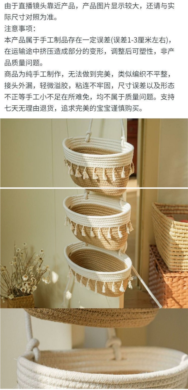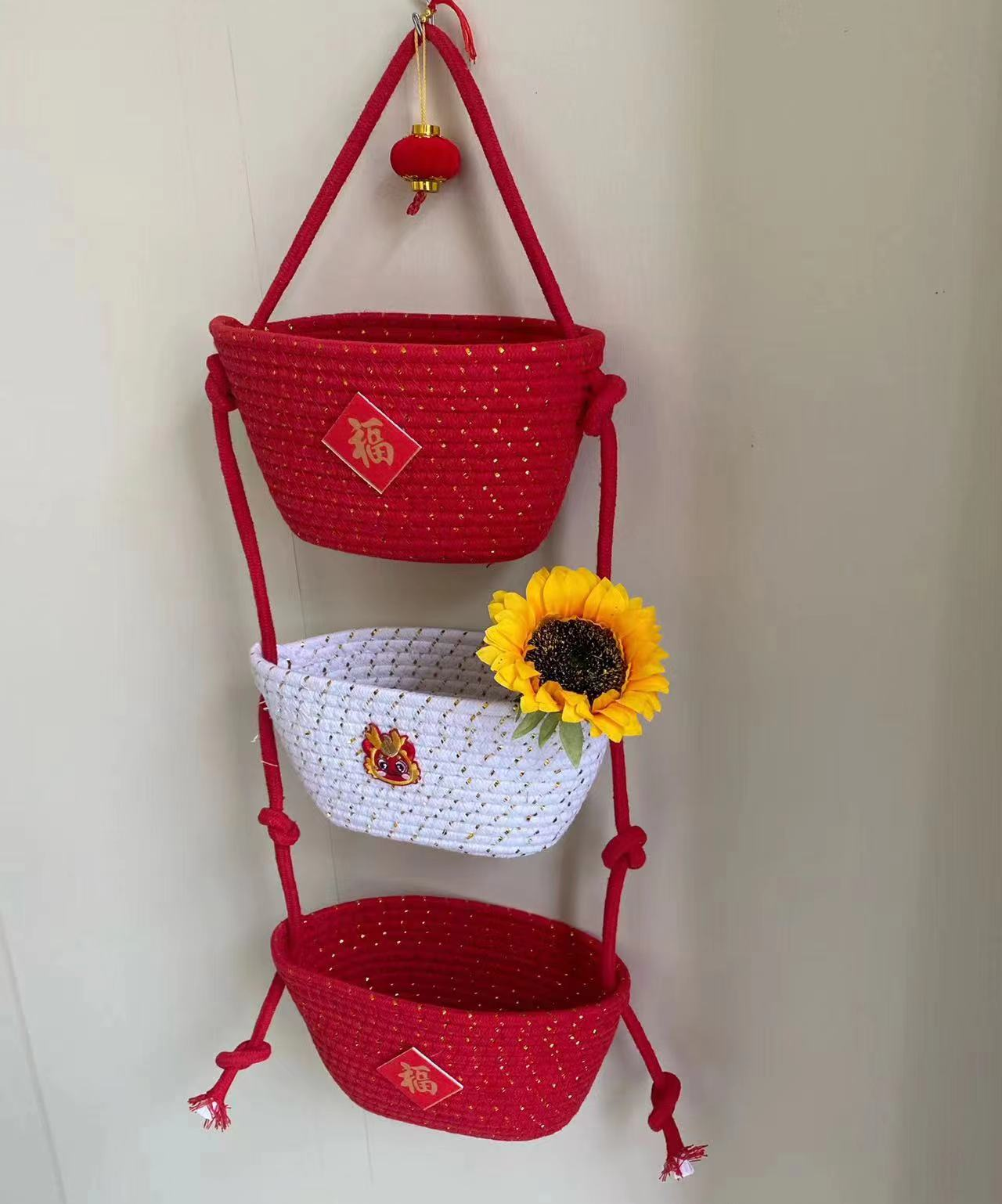 • Xianglong Nafu 3링크 면 로프 걸이 바구니 (22*13)