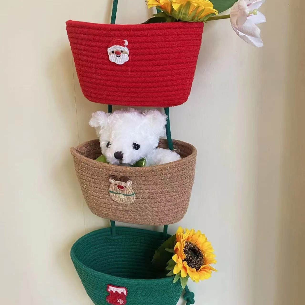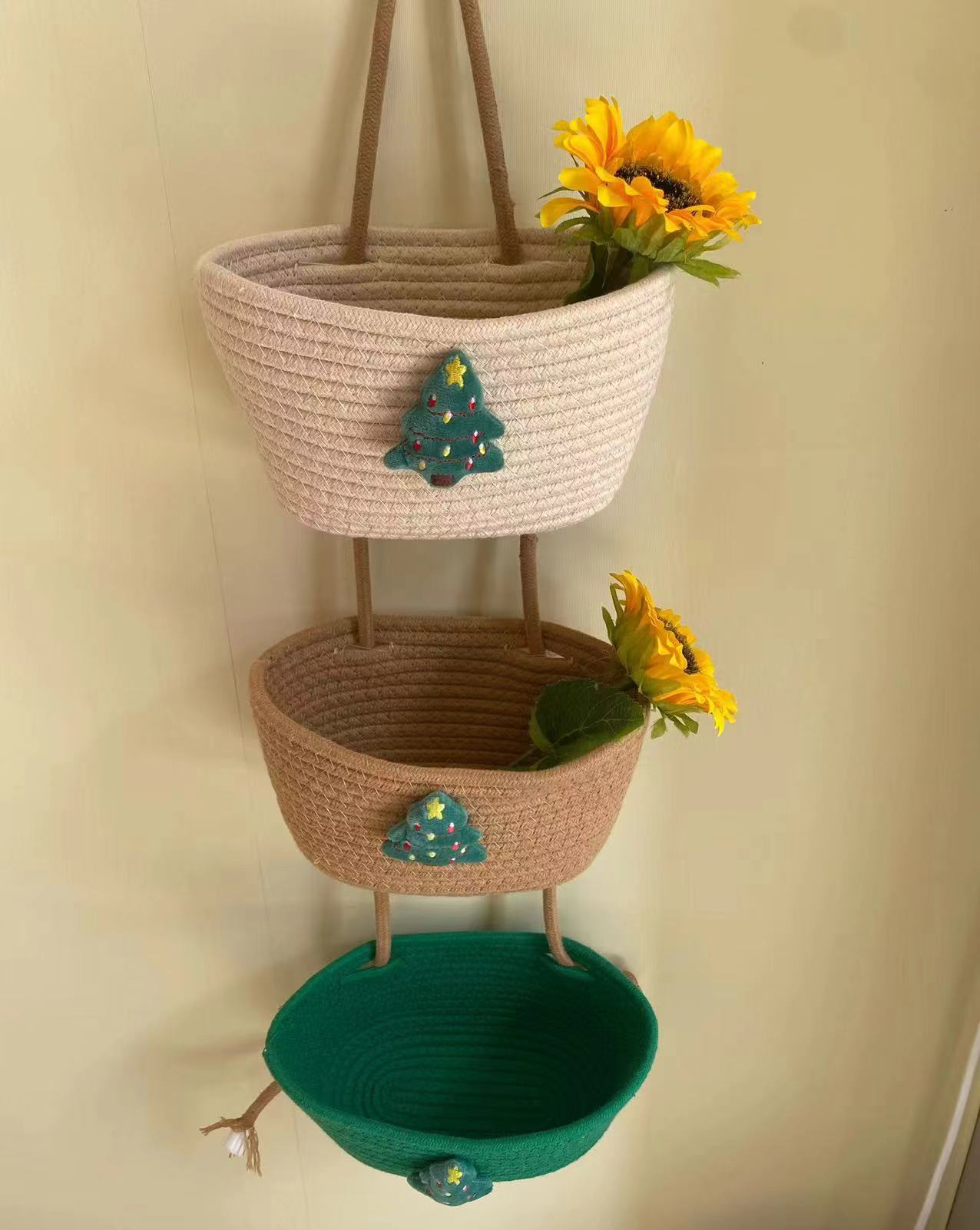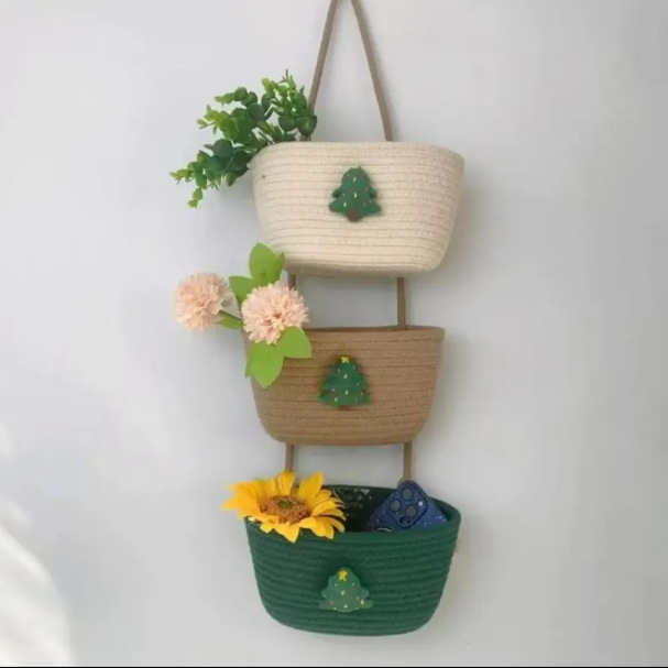 • 크리스마스 트리 트리플 코튼 로프 걸이바구니(22*13)