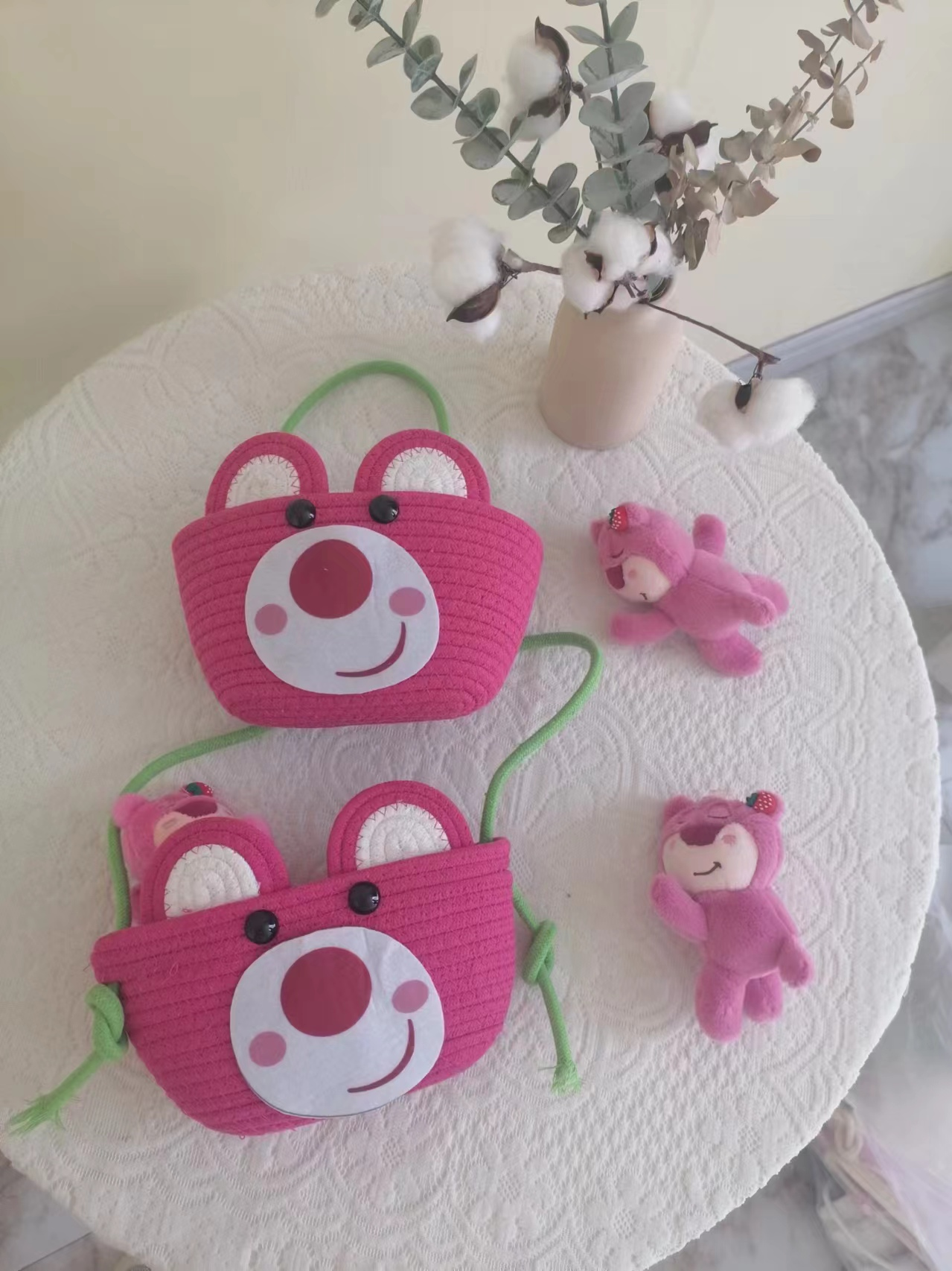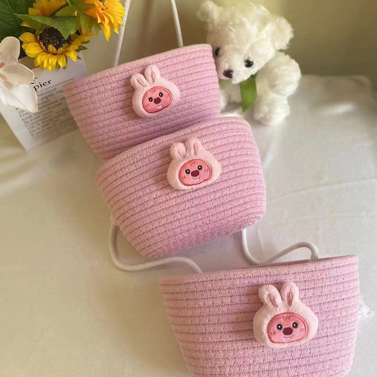 • 딸기곰 삼중면로프 걸이바구니 (22*13)