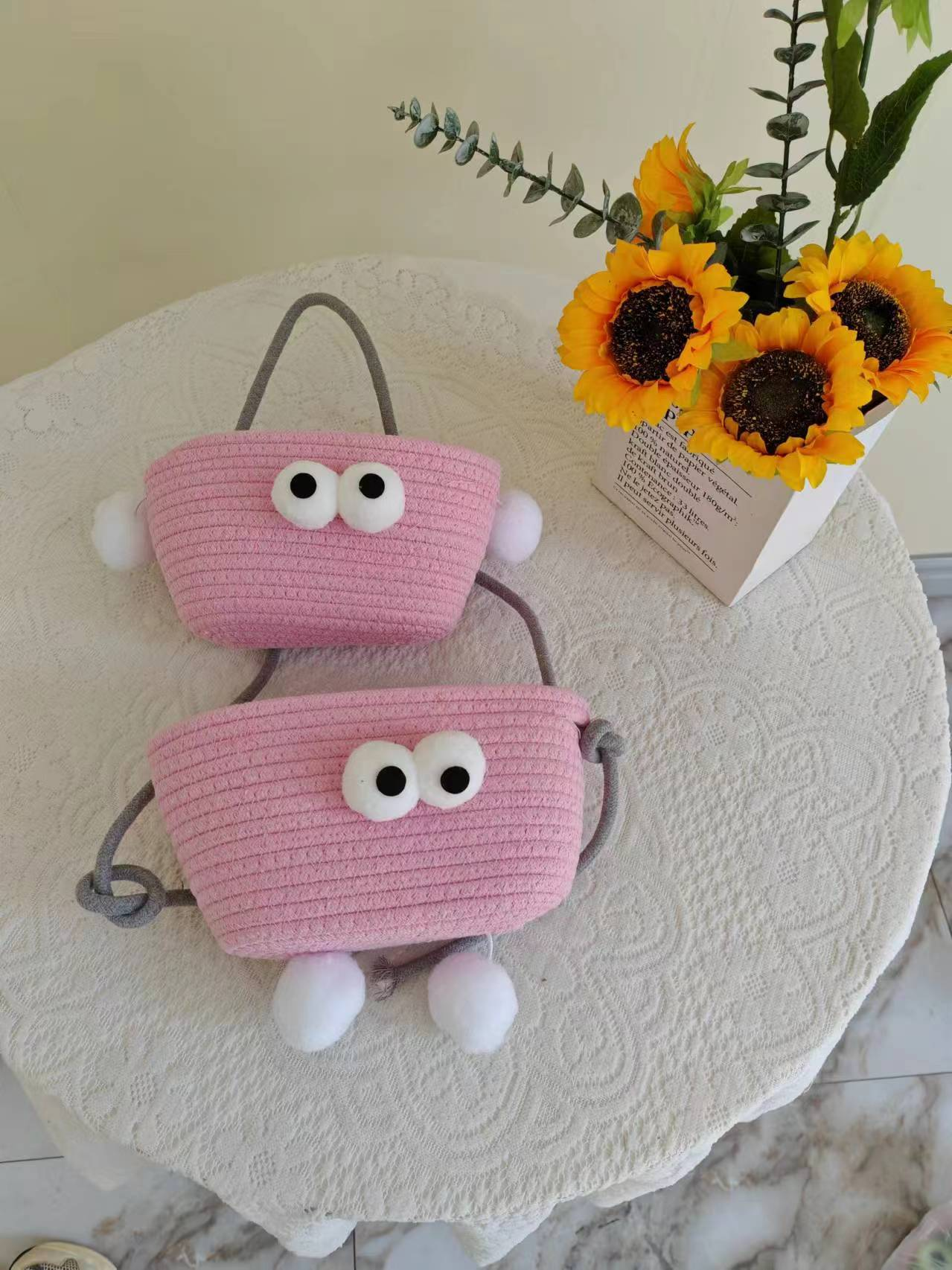 • 작고 귀여운 닭 삼중 면로프 걸이바구니 (22*13)