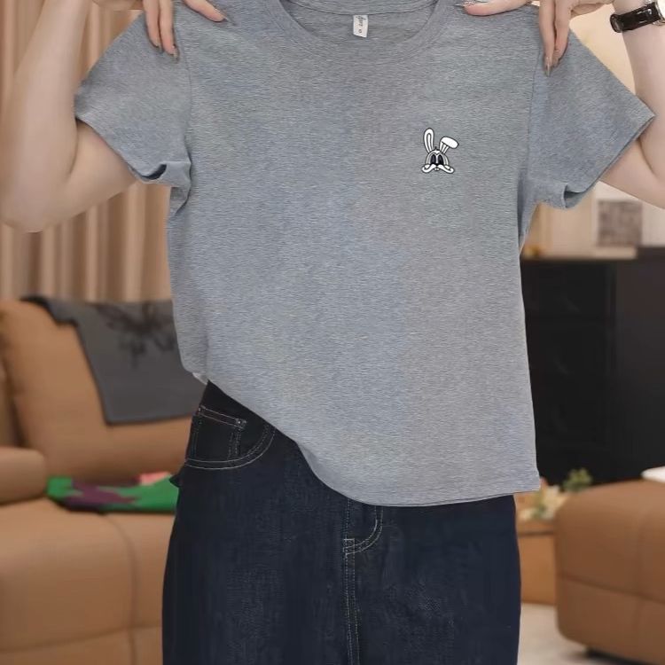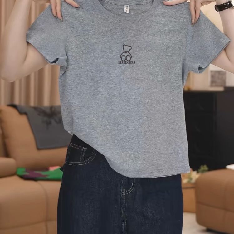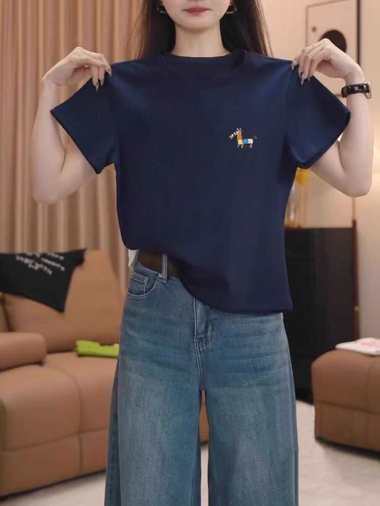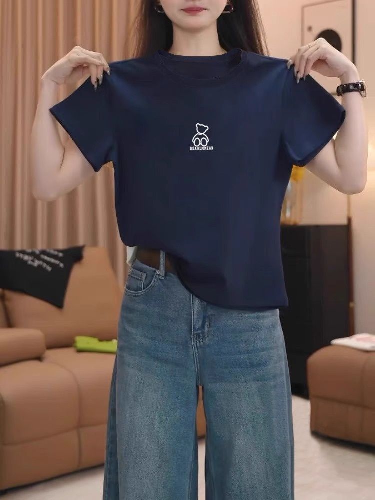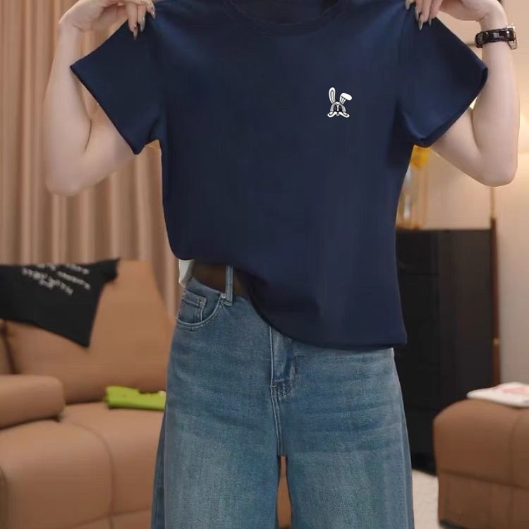 2026년 신상 여름 여성용 숄더라인 순면 반팔 티셔츠, 패셔너블하고 다재다능한 네이비 블루 상의/베이스 레이어스토어 가기