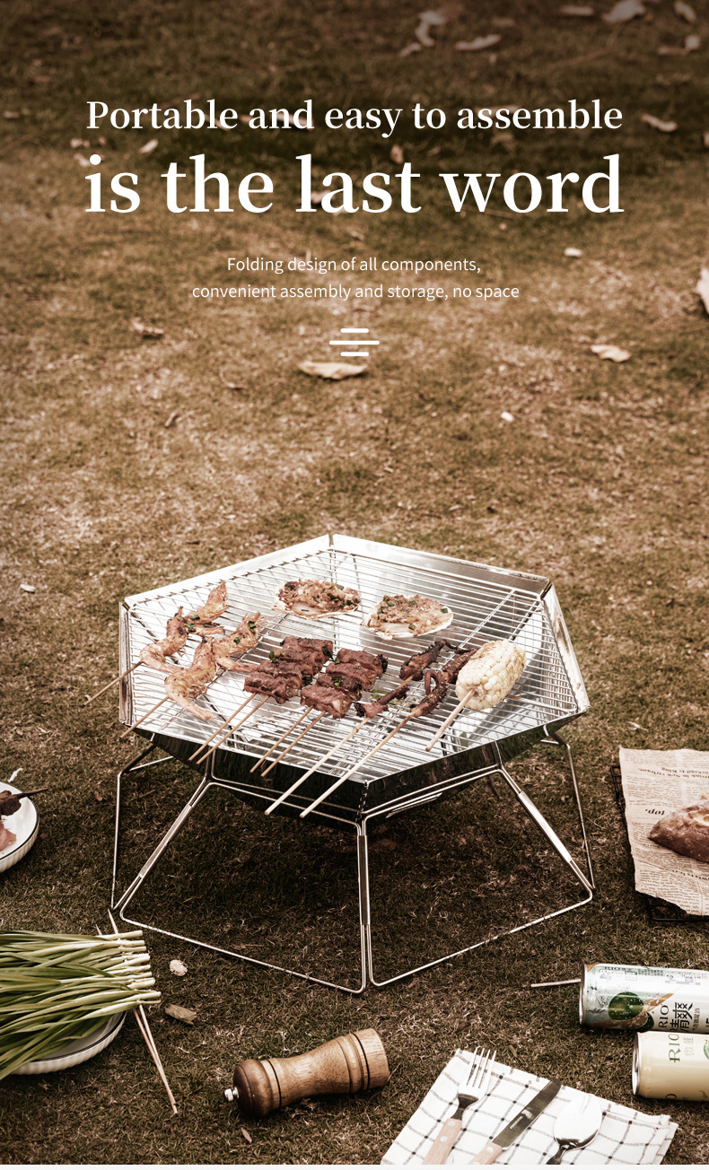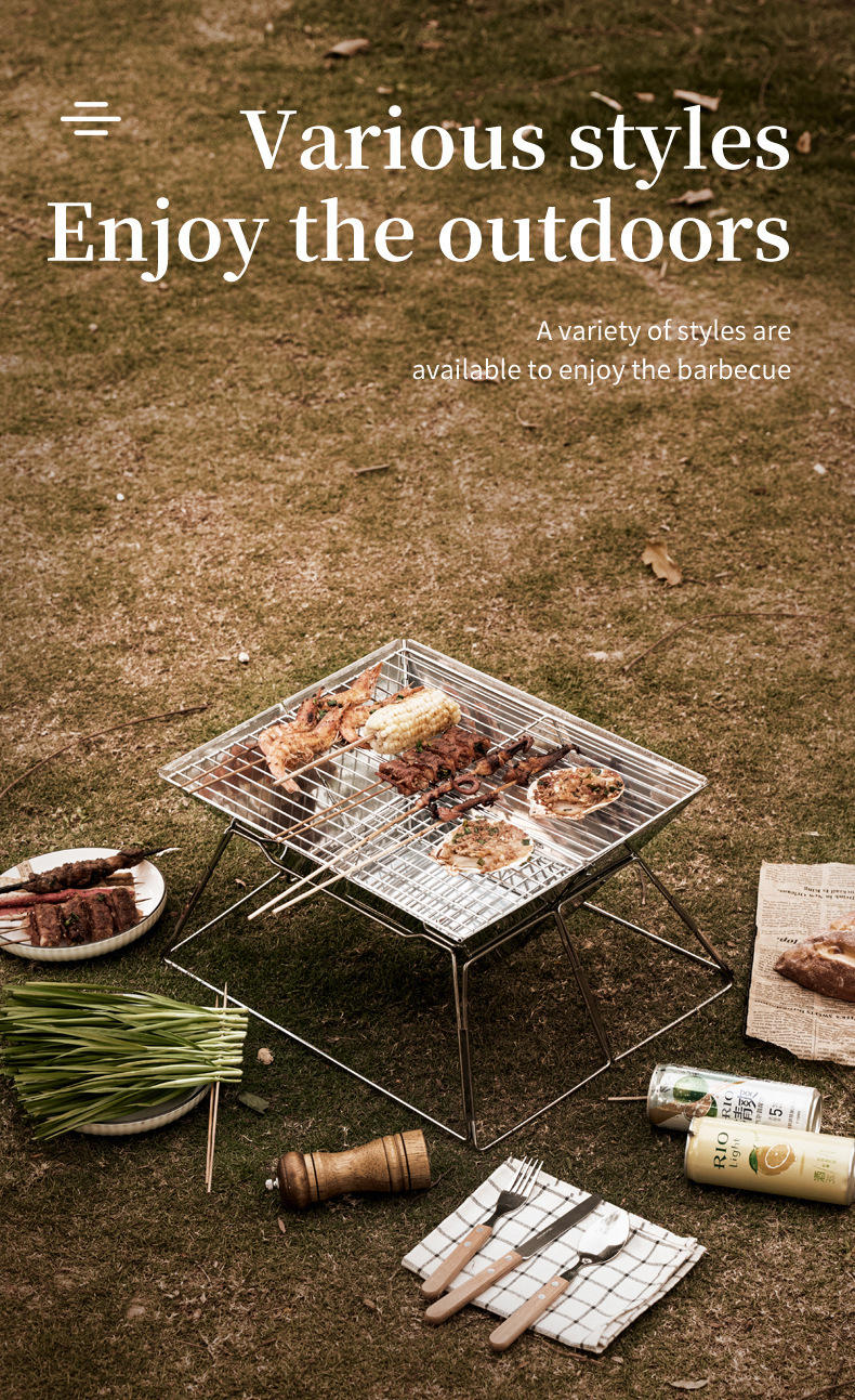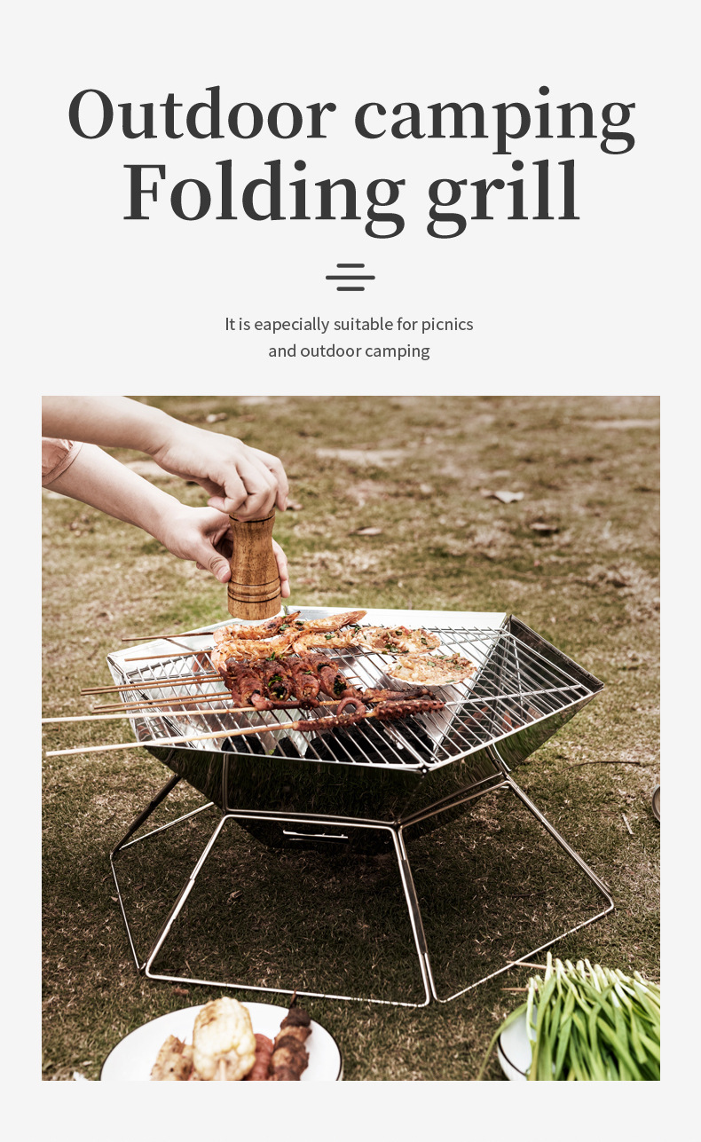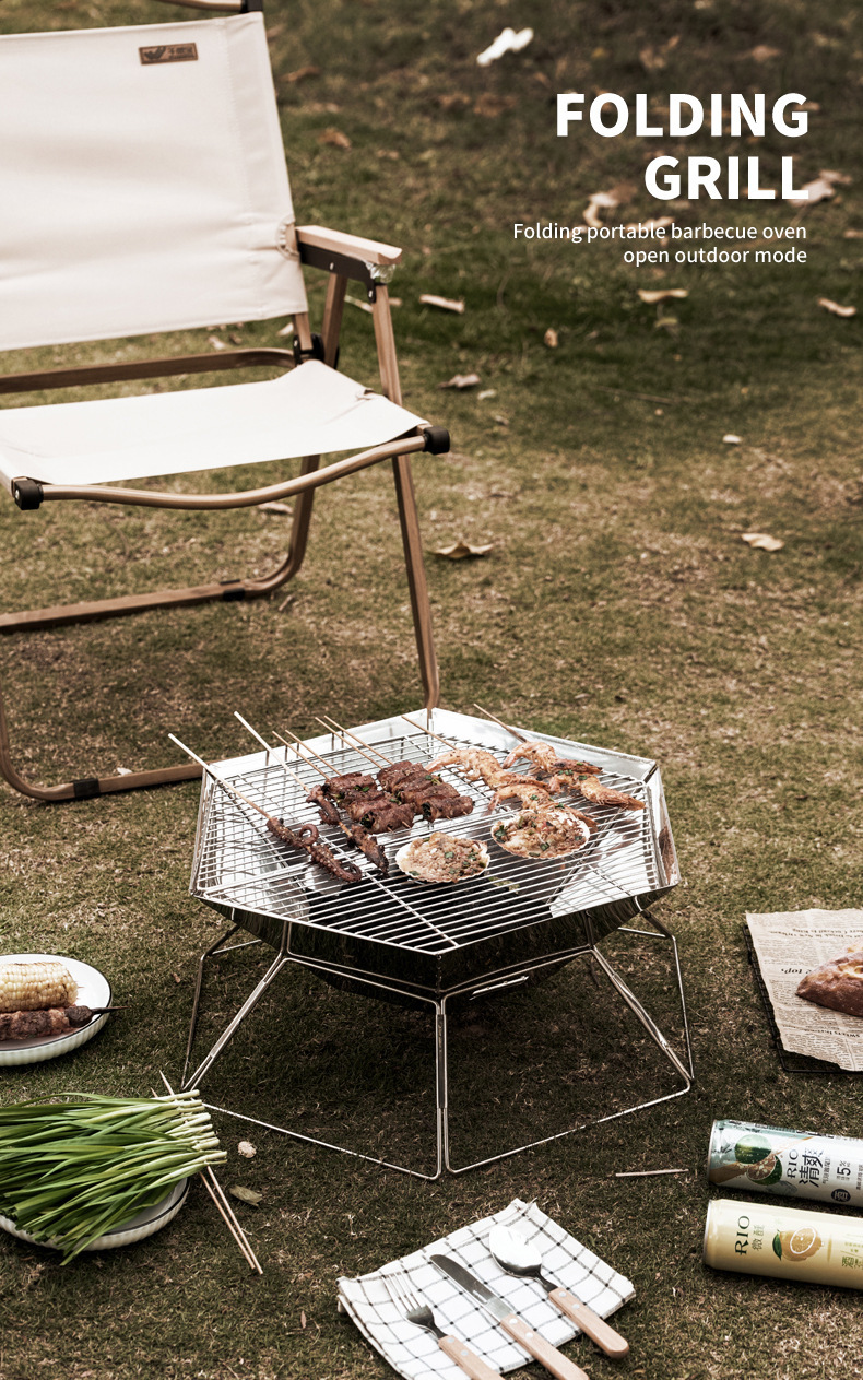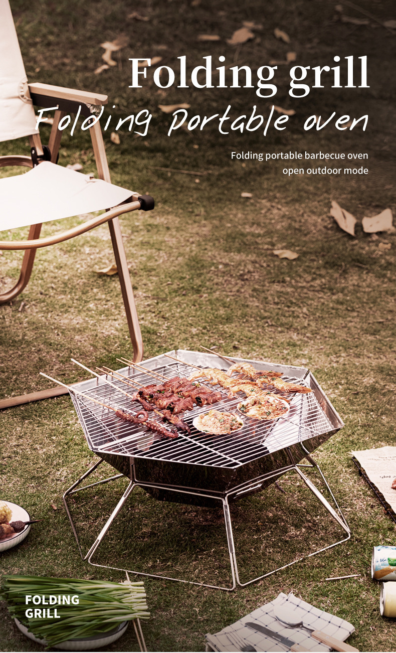 야외 바베큐 그릴 캠핑 바베큐 휴대용 스테인레스 스틸 접이식 그릴 그릴 숯 장작 스토브 난방 모닥불 스테이션스토어 가기