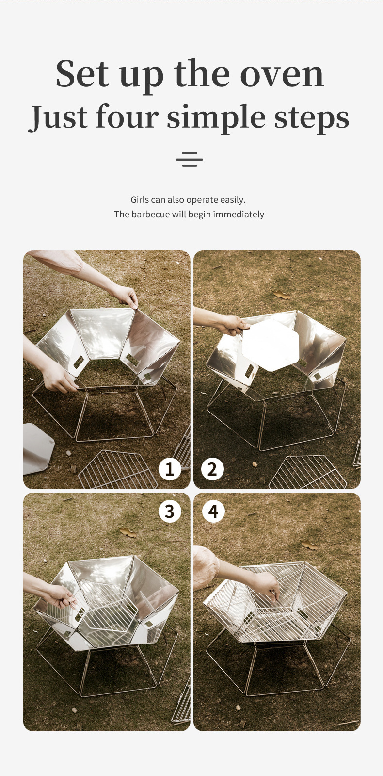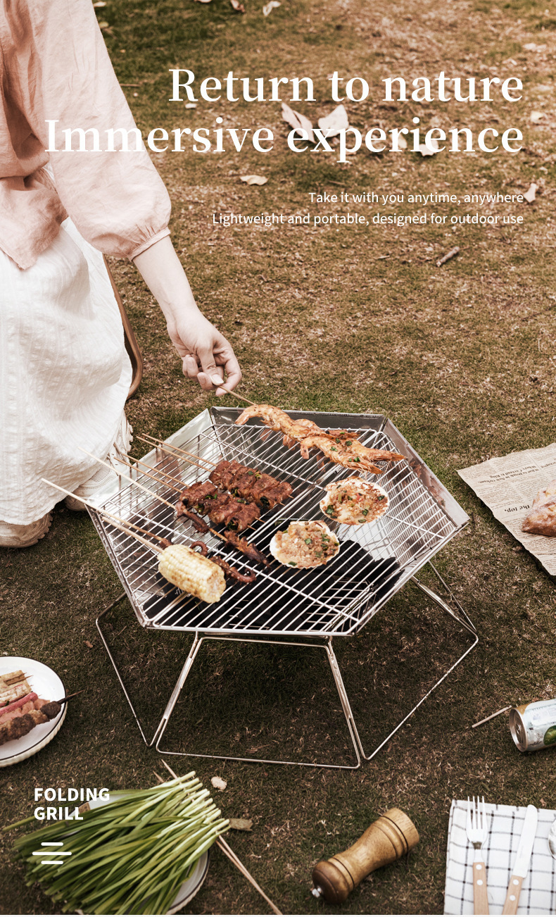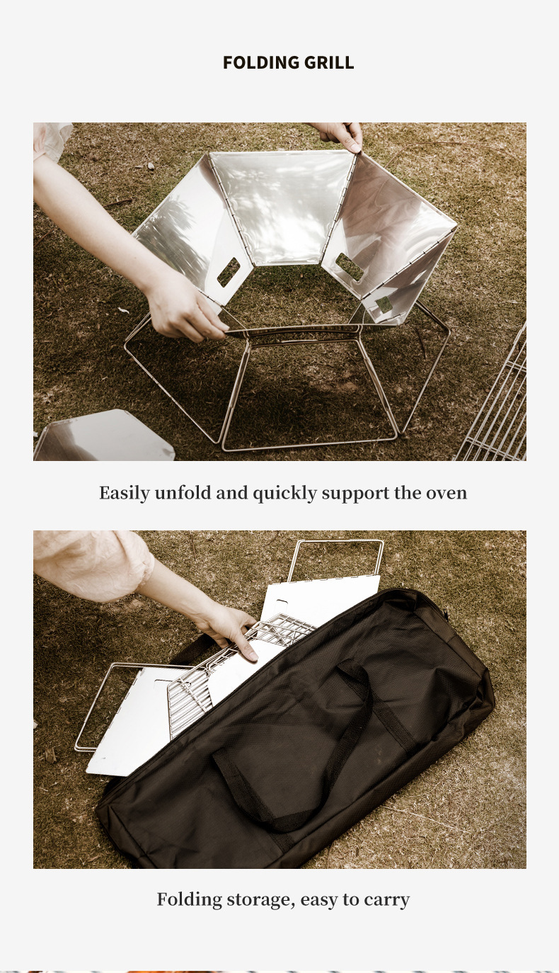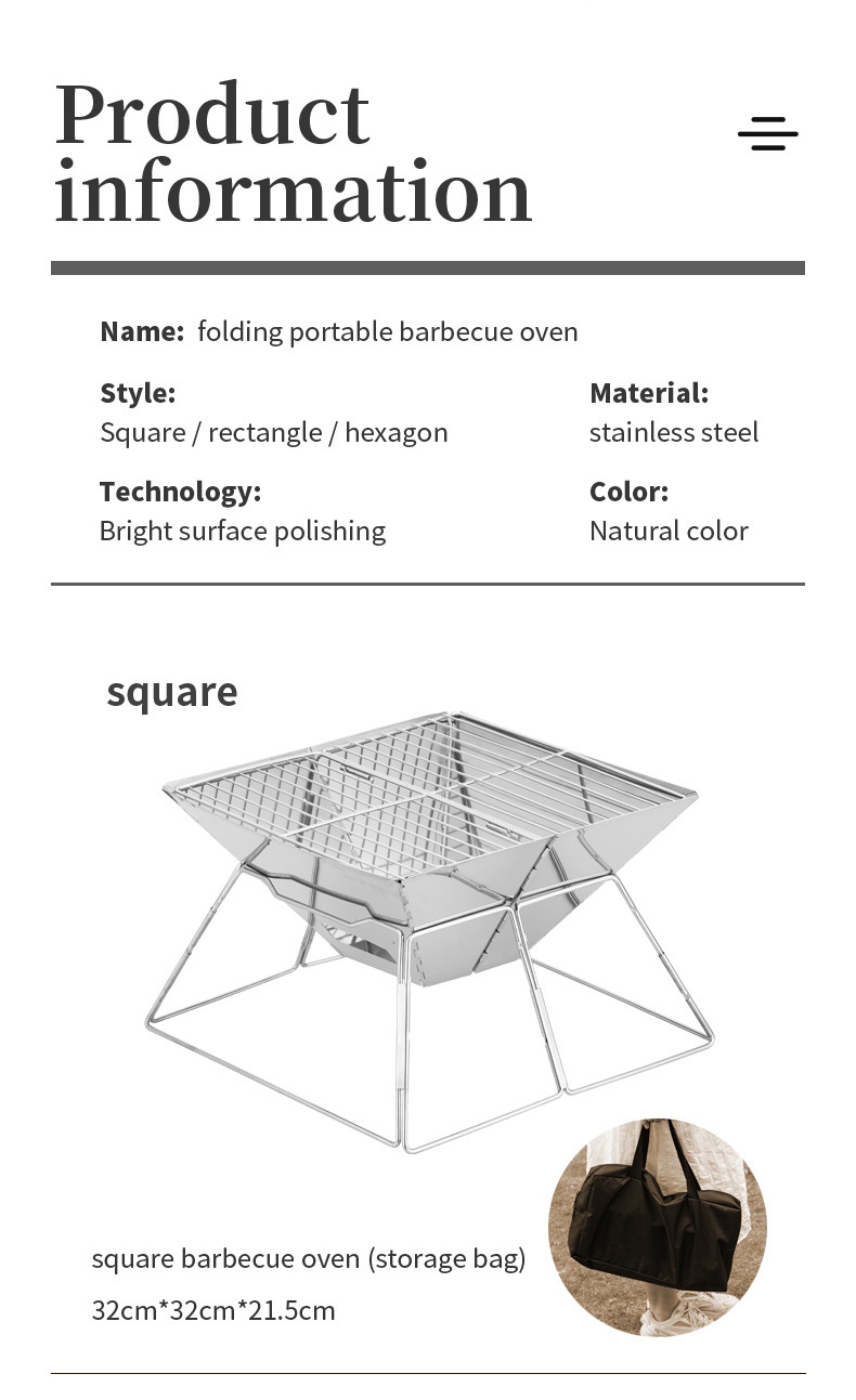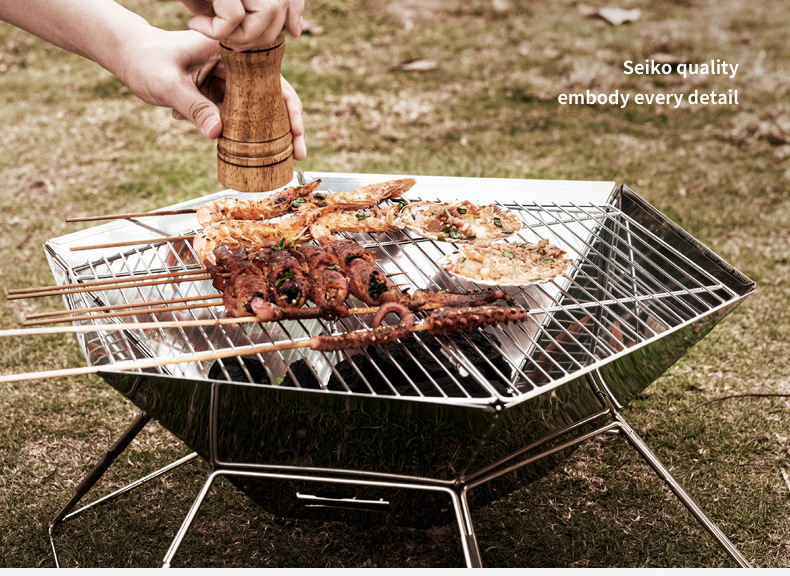 야외 바베큐 그릴 캠핑 바베큐 휴대용 스테인레스 스틸 접이식 그릴 그릴 숯 장작 스토브 난방 모닥불 스테이션스토어 가기