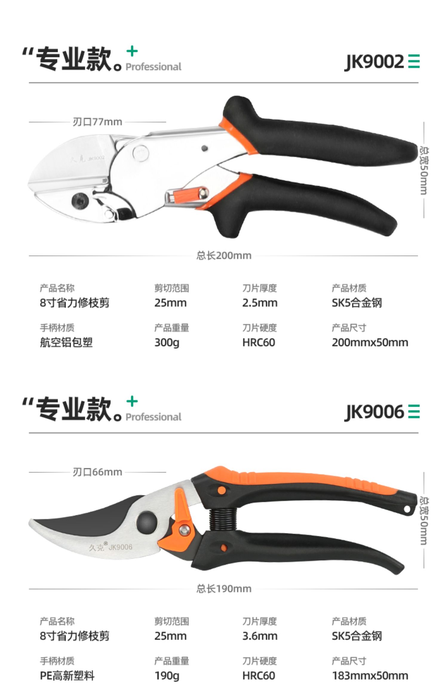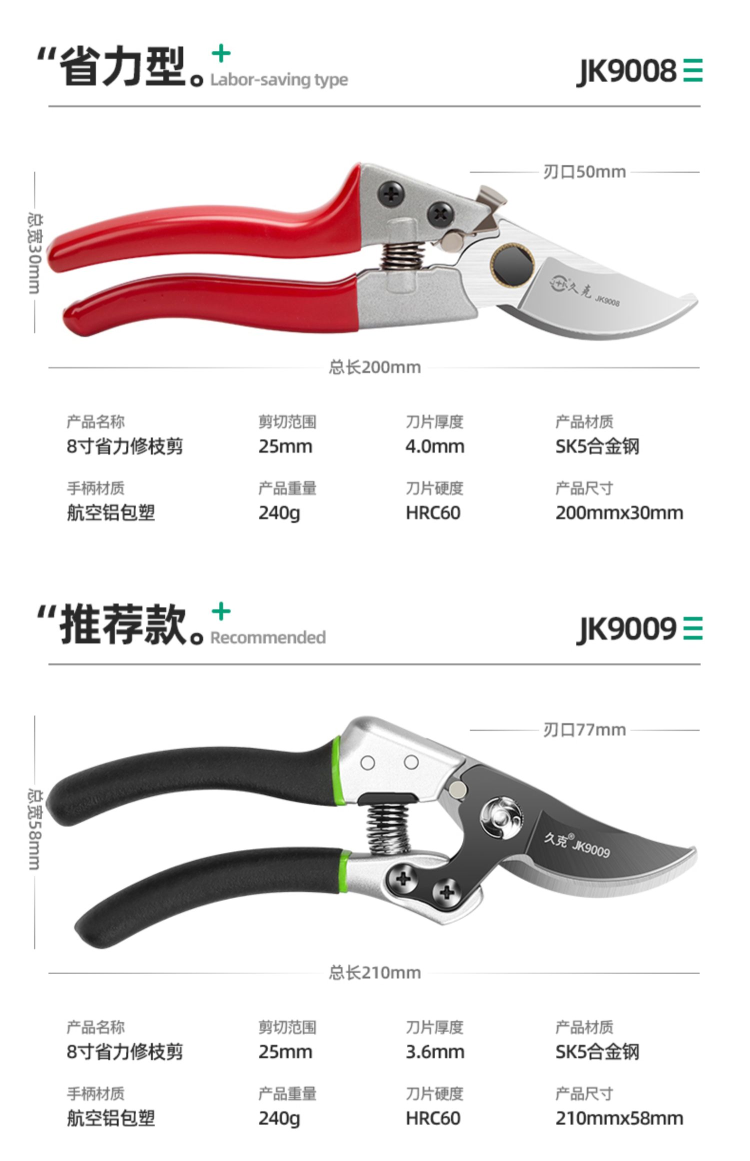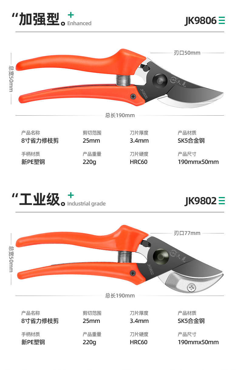 JiuKe 정원 가위 다양한 모델 선택 고품질 재료 내구성이 뛰어나고 날카로운 노동 절약형 원예 가위