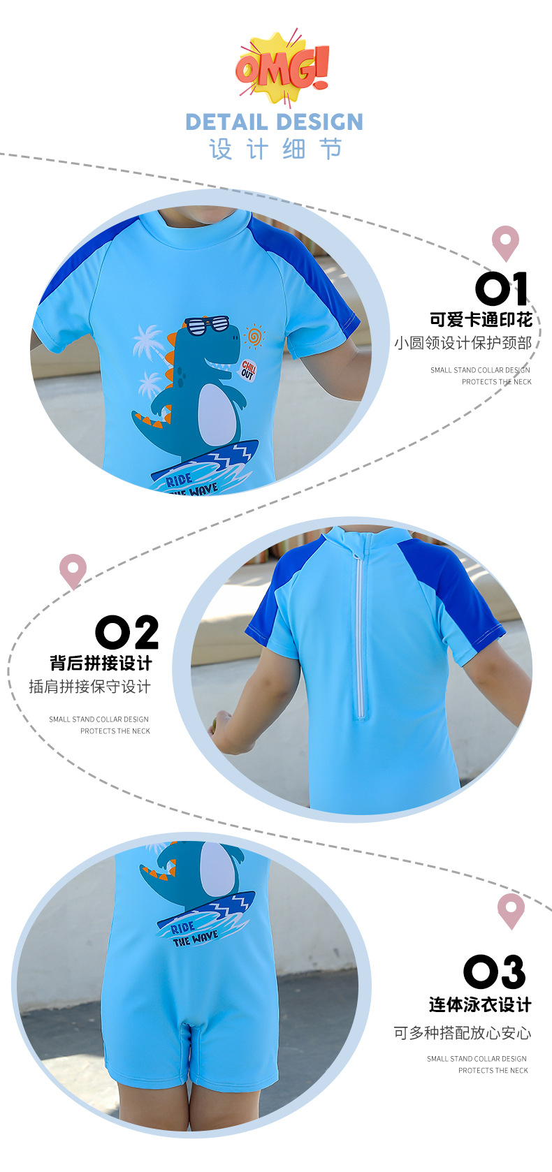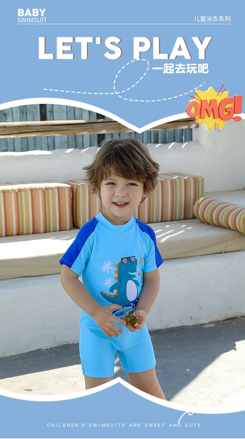 공장 직접 판매 어린이 수영복 소년 유행 잘 생긴 만화 공룡 어린이 소년 아기 원피스 어린이 수영복스토어 가기