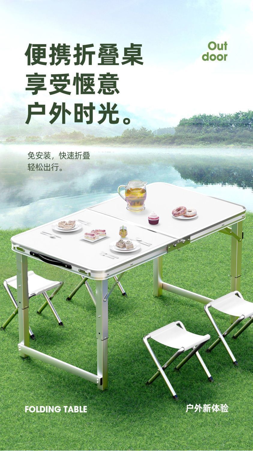 접이식 테이블 다기능 두꺼운 스톨 테이블 접이식 특수 휴대용 가정용 조절 가능한 간단한 식탁과 의자 크로스보더스토어 가기