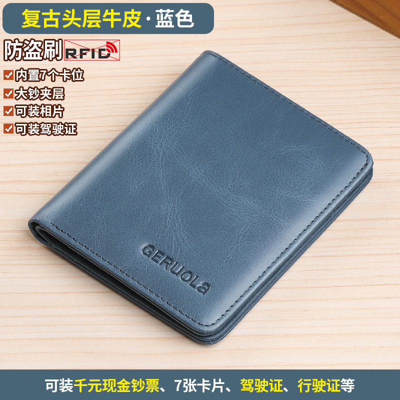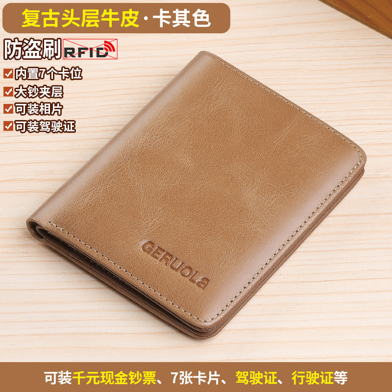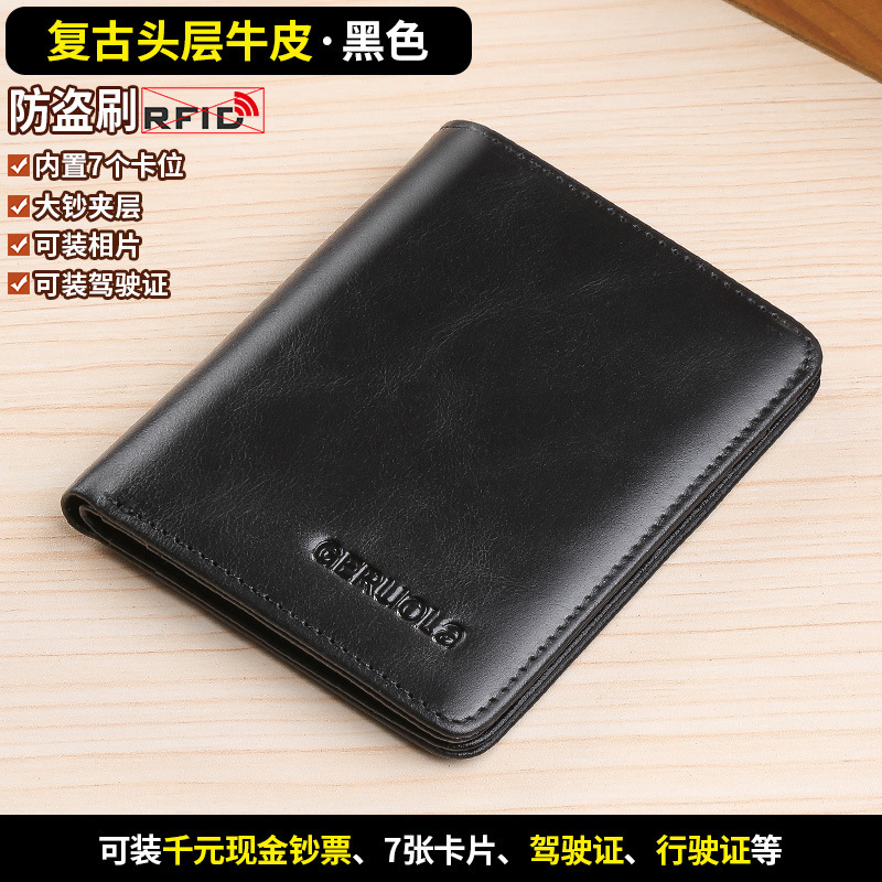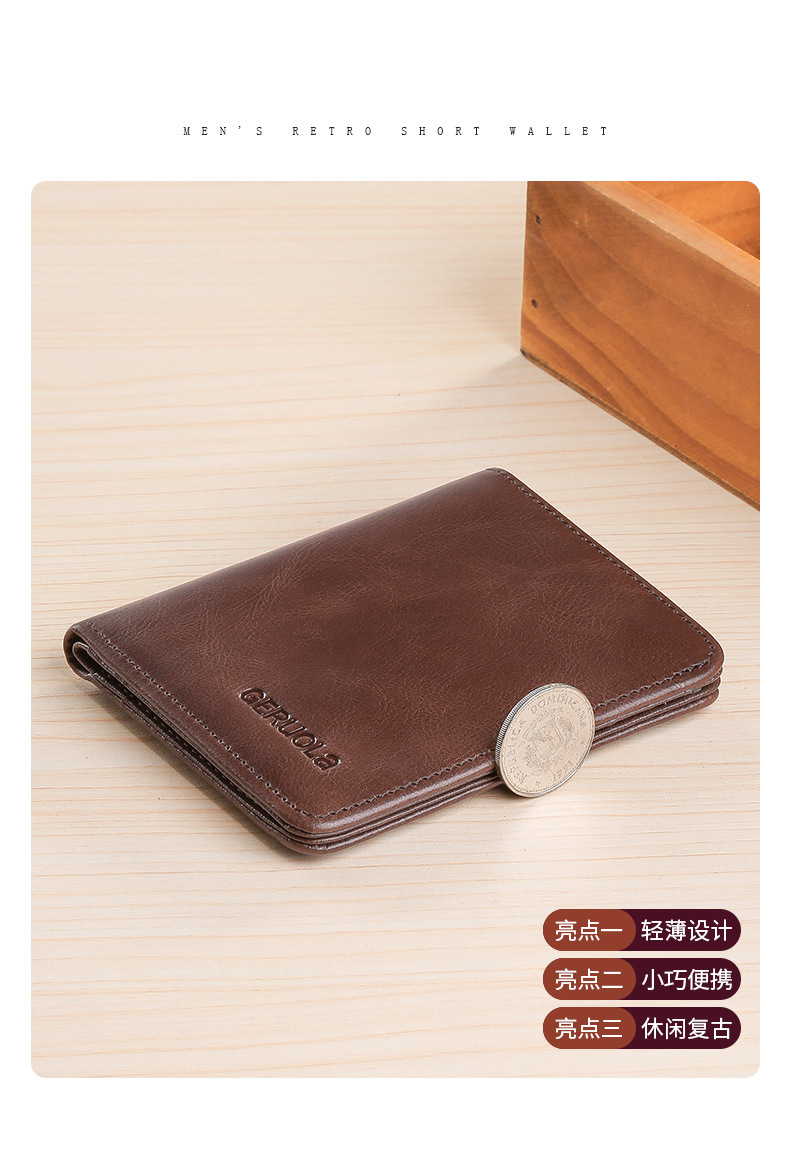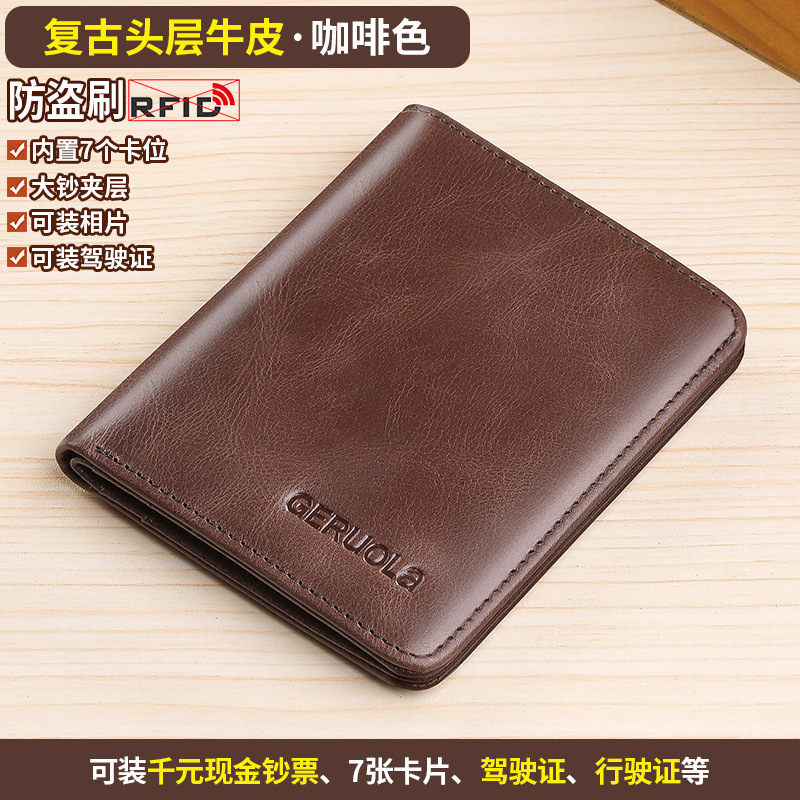 국경 간 남성용 지갑 rfid 캐주얼 레트로 정품 가죽 지갑 Amazon 80% off 식물성 태닝 가죽 짧은 지갑 지갑스토어 가기