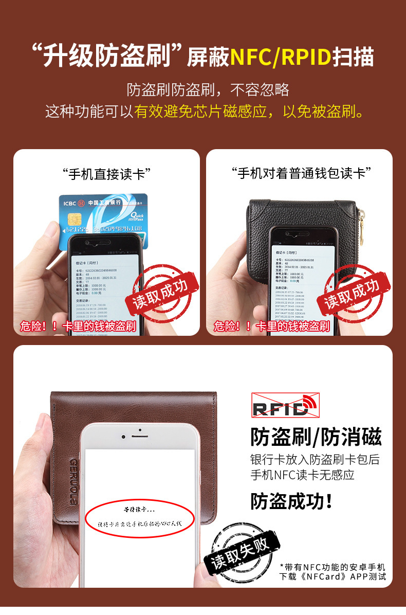 跨境男士钱包rfid休闲复古真皮钱包亚马逊两折植鞣皮短款钱包钱夹