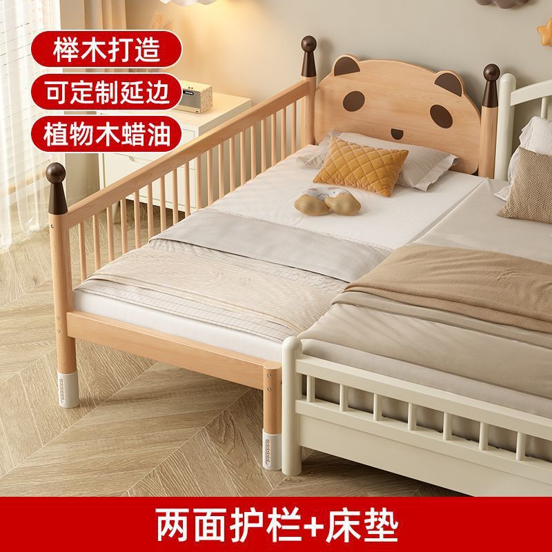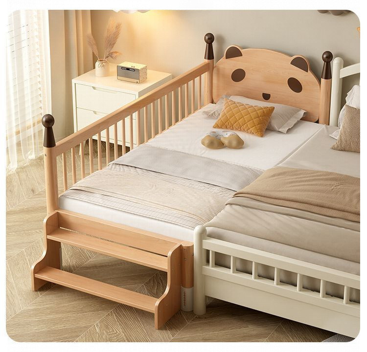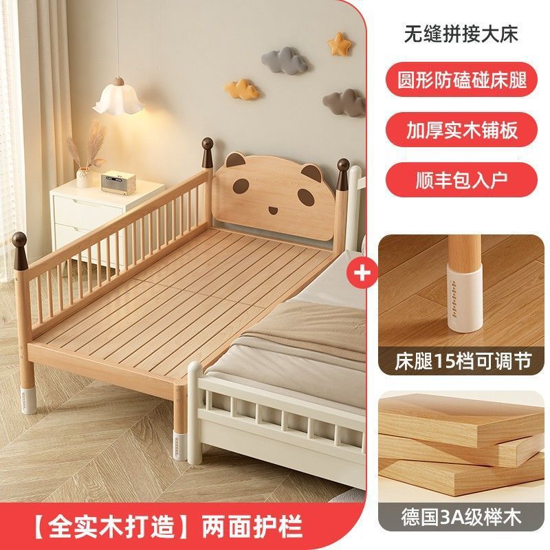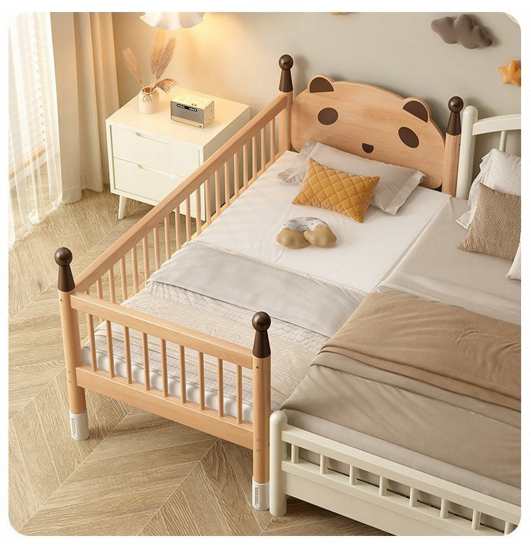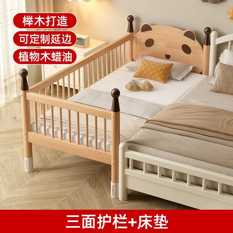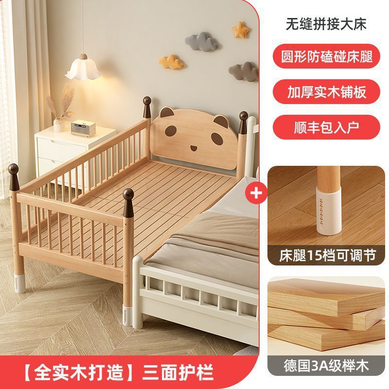 너도밤 나무 아기 조절 식 접합 침대 확대 소년 아기 침대 옆 단단한 나무 유아용 침대 어린이 대형 침대 한 조각 배치