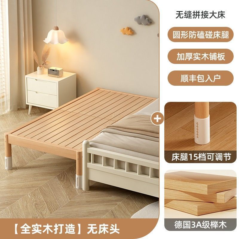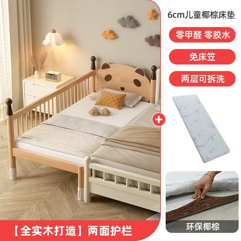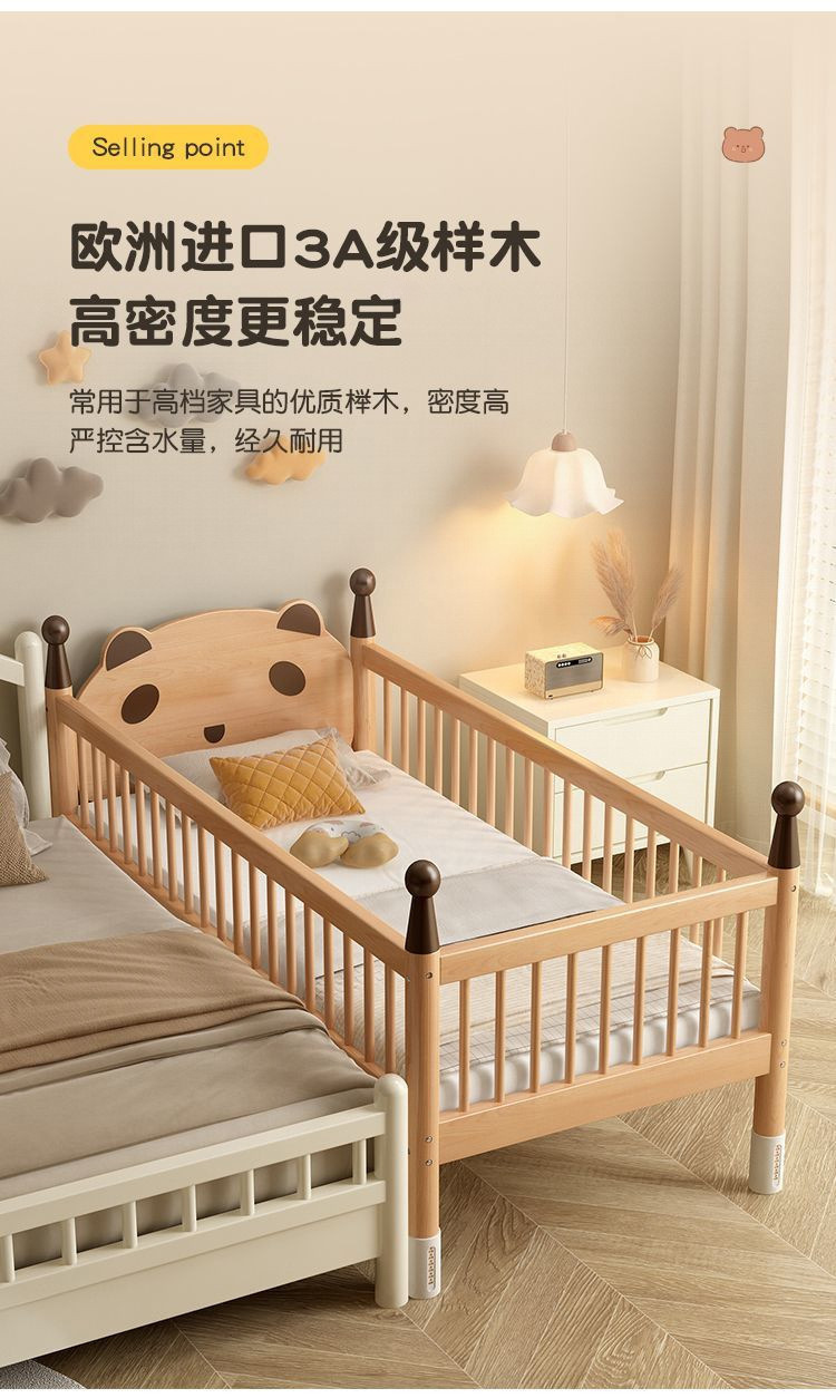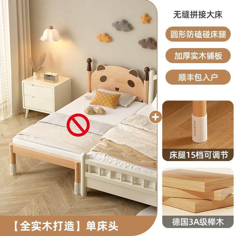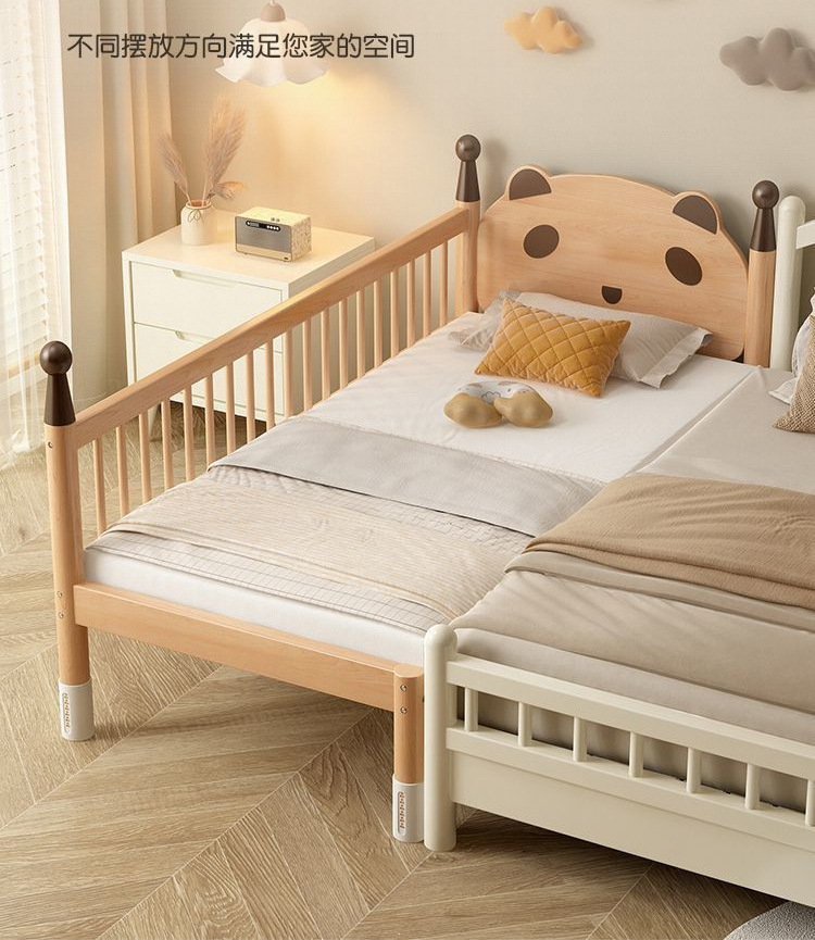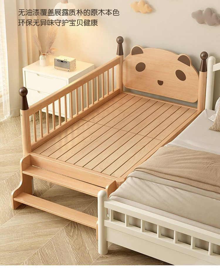 너도밤 나무 아기 조절 식 접합 침대 확대 소년 아기 침대 옆 단단한 나무 유아용 침대 어린이 대형 침대 한 조각 배치