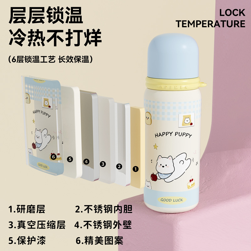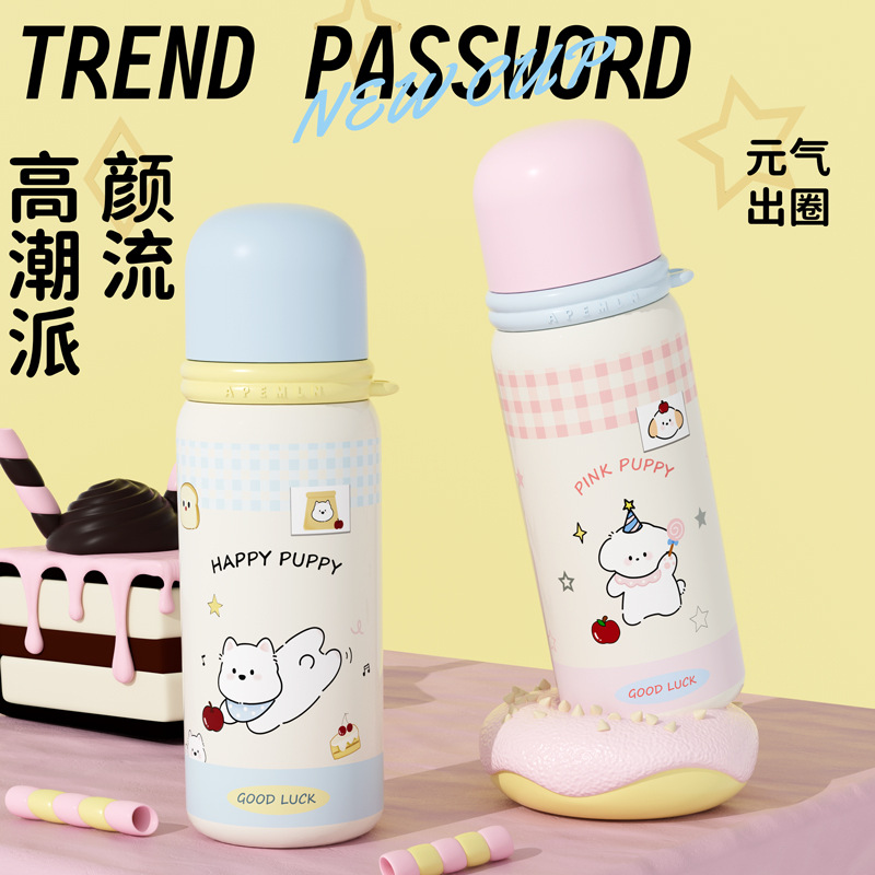 창의적인 304 스테인리스 보온병 여성용 고급스러운 직수형 물컵 휴대용 귀여운 학생용 탄환형 텀블러스토어 가기