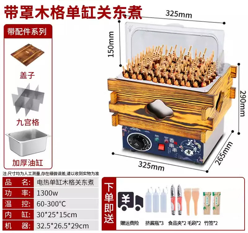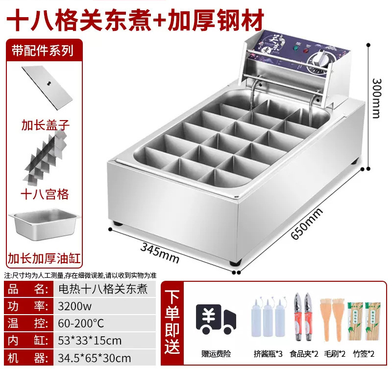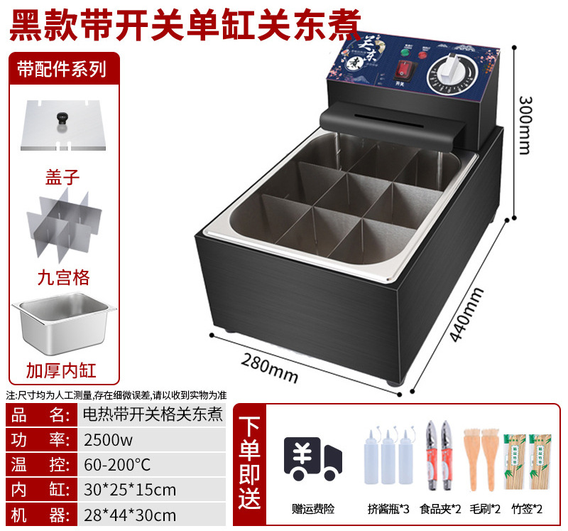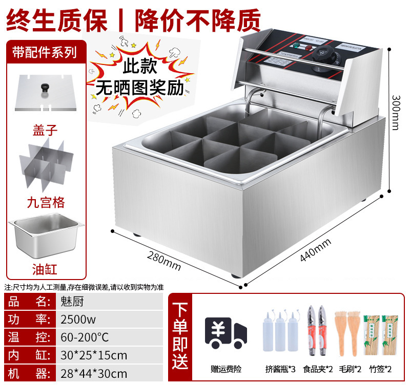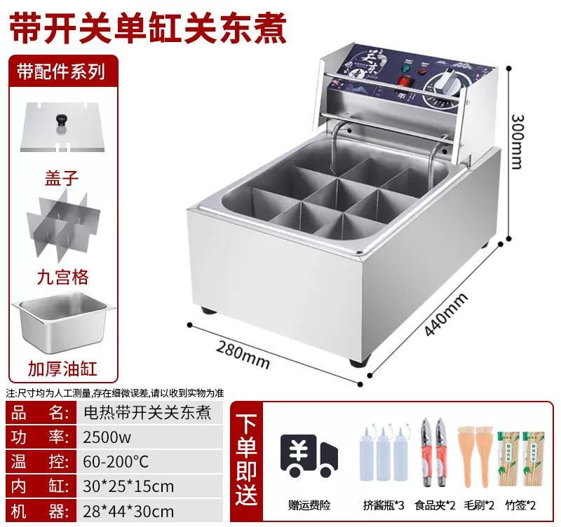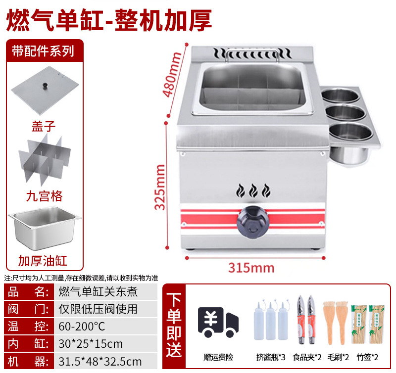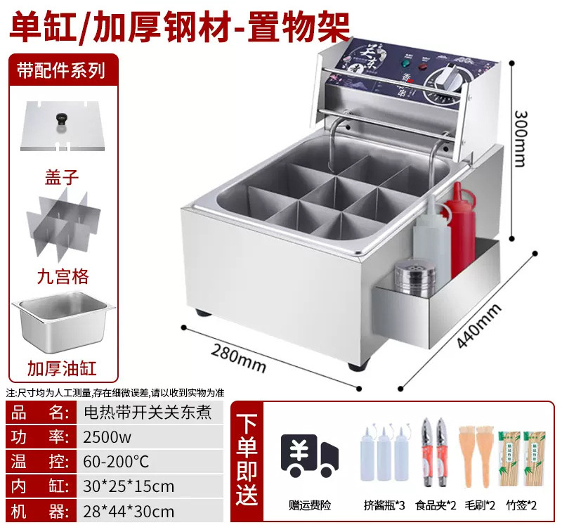 • 전기 증점 단일 실린더 오뎅 [두꺼운 강철 + 무료 보관 랙 + 뚜껑]
