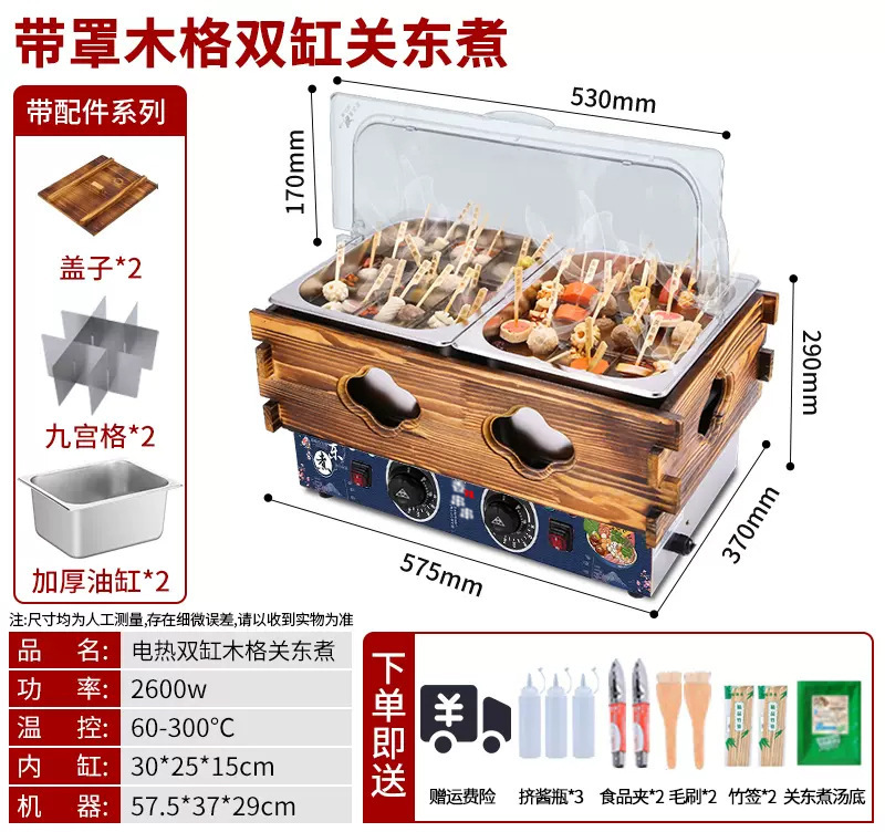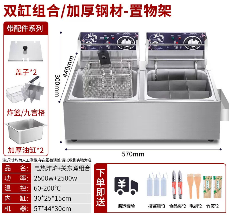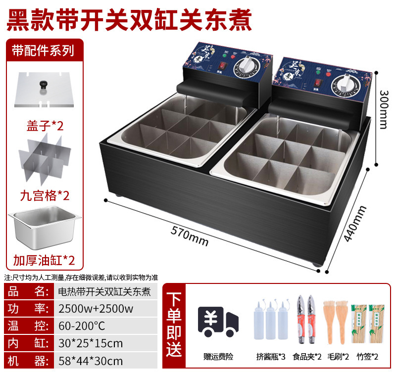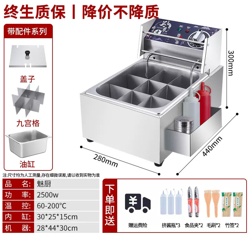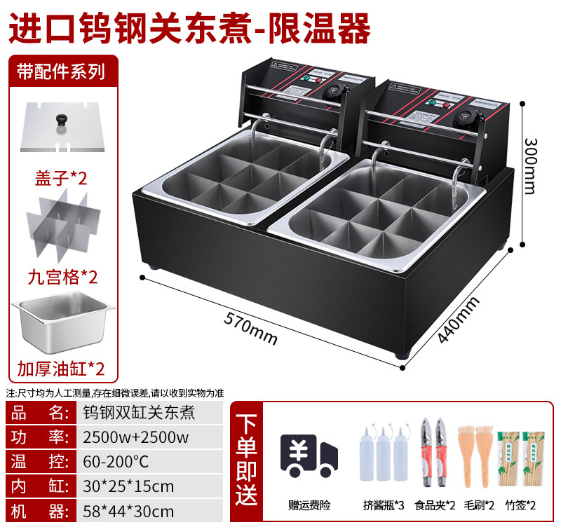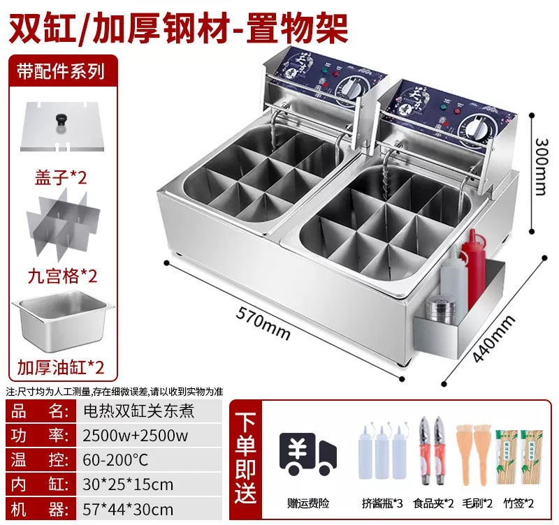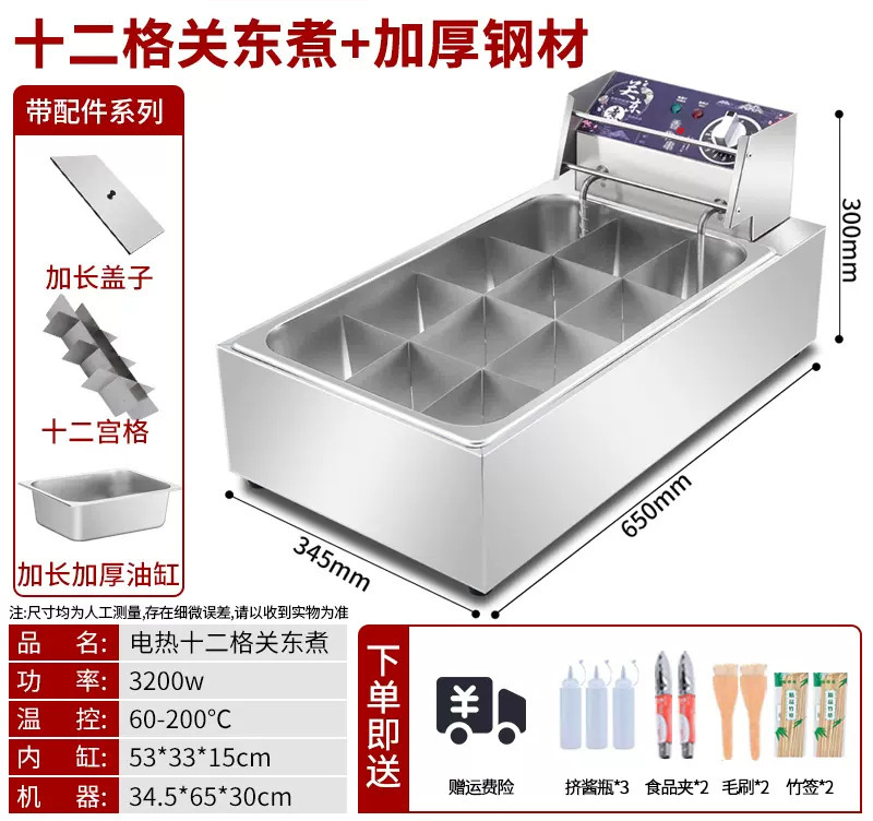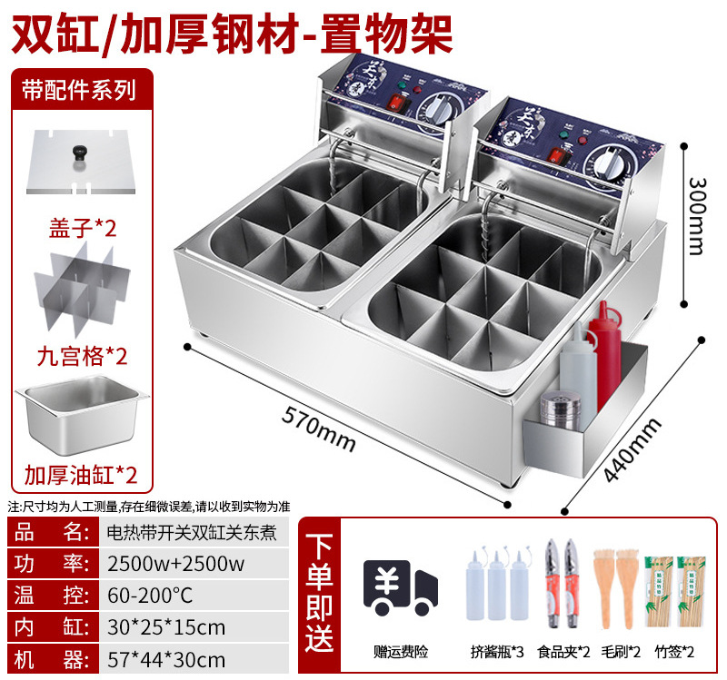 • 전기 증점 단일 실린더 오뎅 [두꺼운 강철 + 무료 보관 랙 + 뚜껑]