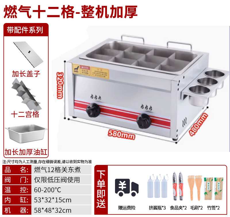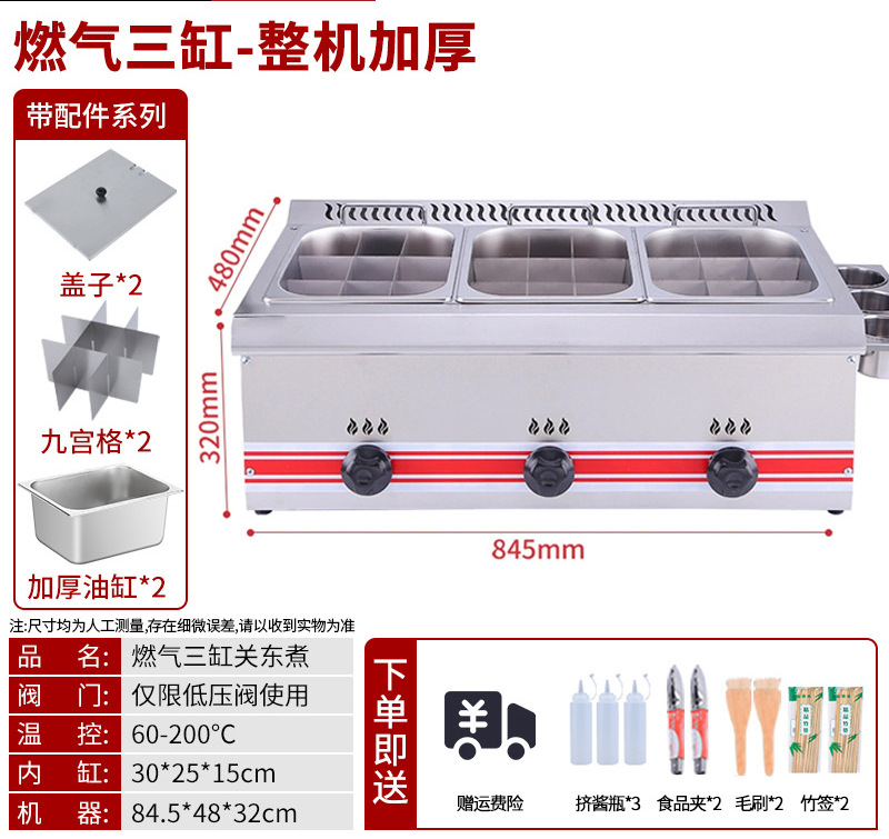 • [가스 모델] 9 그리드 + 9 그리드 + 9 그리드 3기통 오뎅 요리(전체 기계가 두꺼워짐 + 여러 개의 방열 포트)