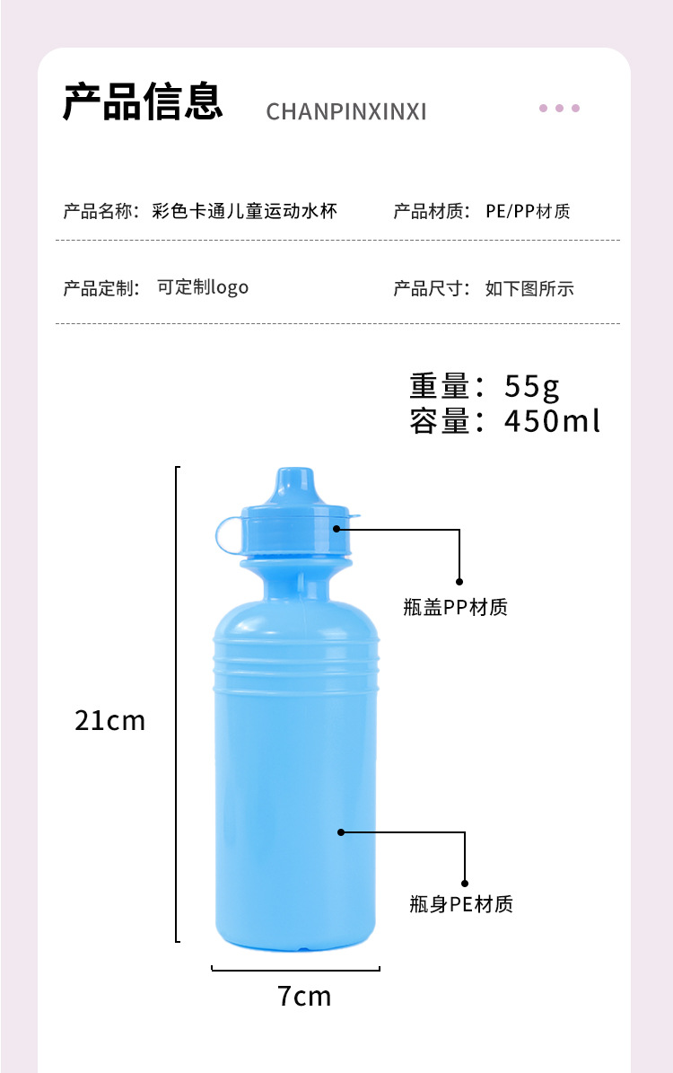 야외 국경 간 새로운 스포츠 물병 어린이 물병 450ml 용량 물병 대용량 물 컵 등산 물병