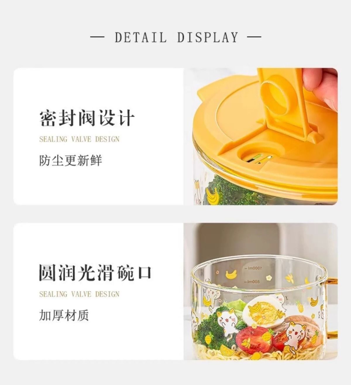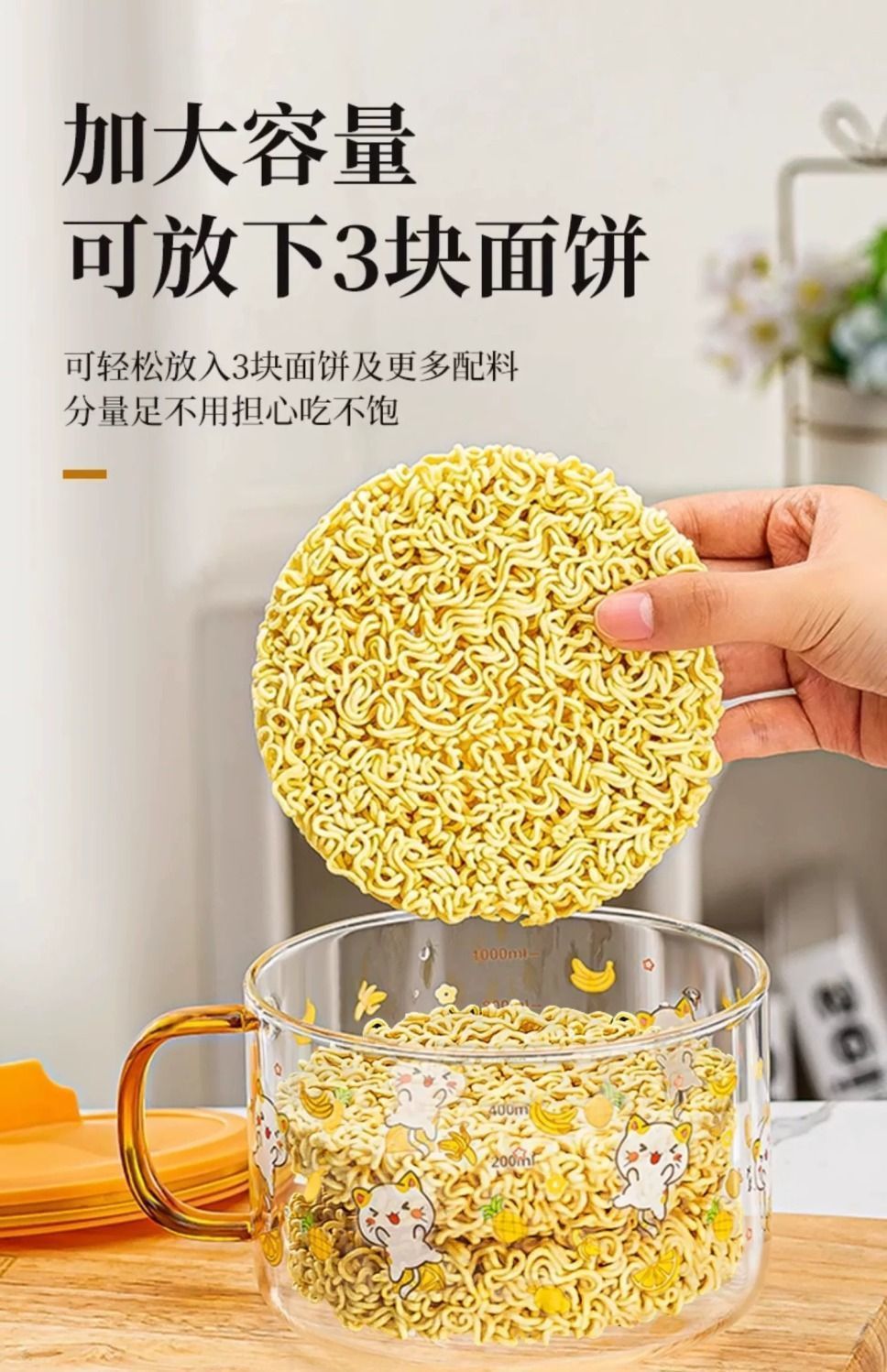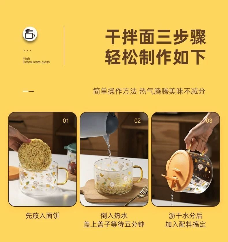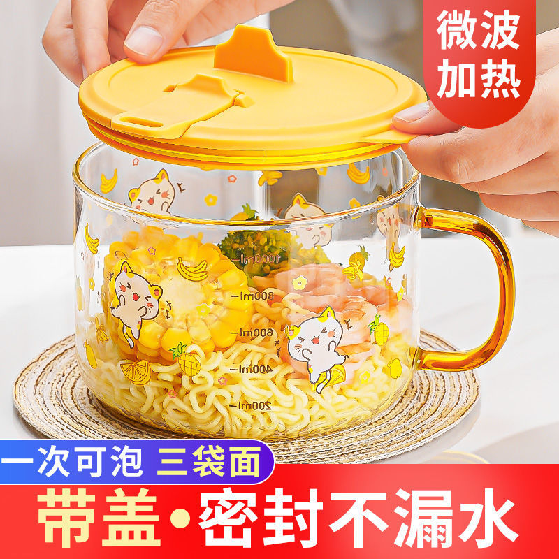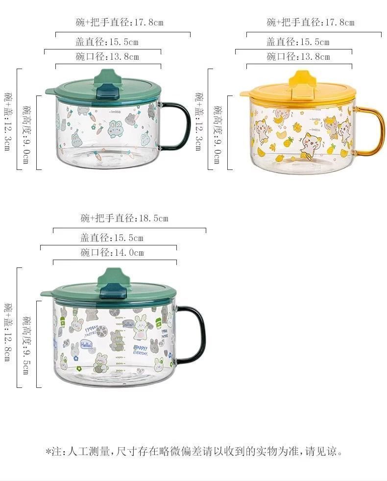공장 직판 기숙사 유리그릇 학생 뚜껑이 있는 라면그릇 고온 방지 손잡이 라면 직장인 도시락통스토어 가기