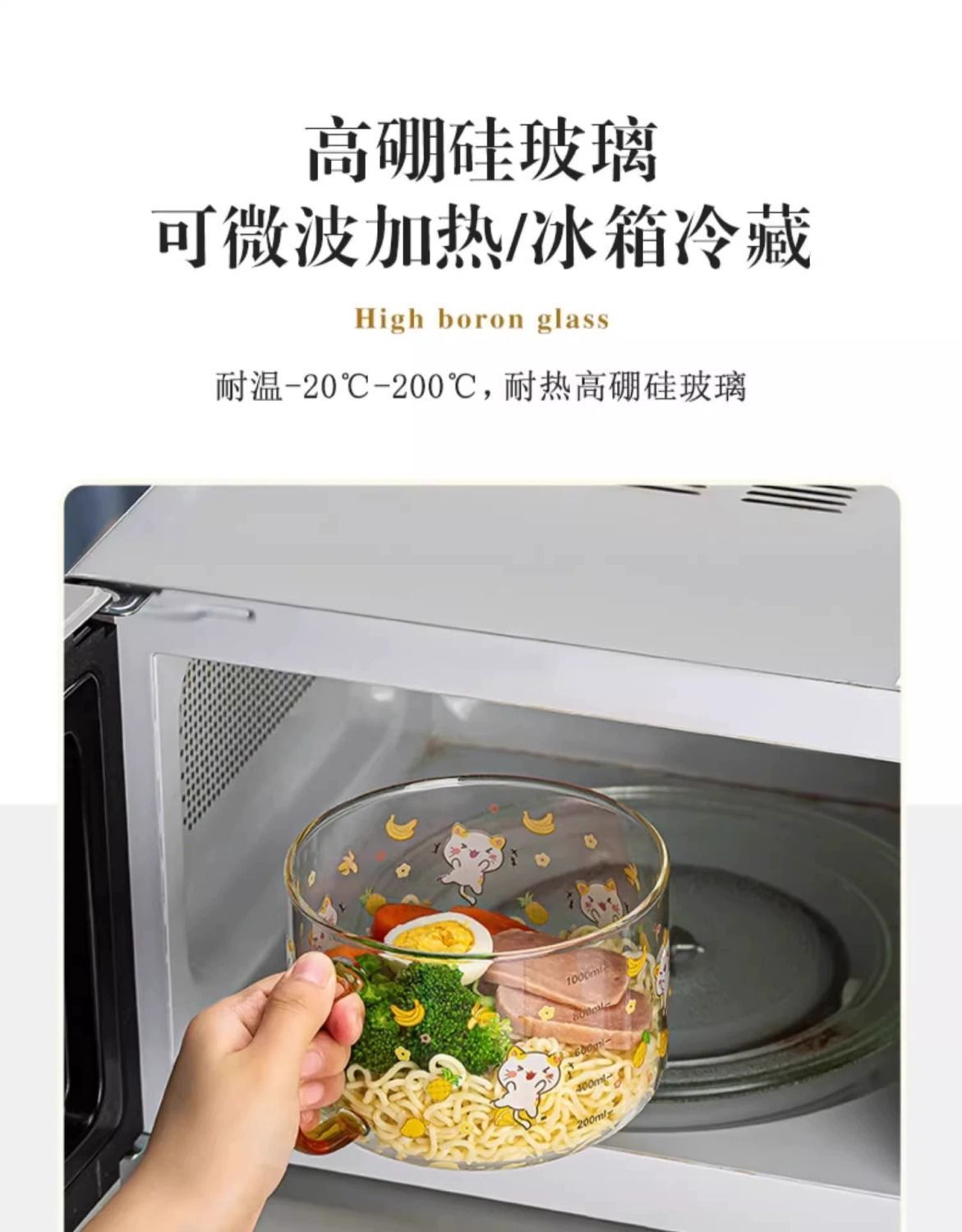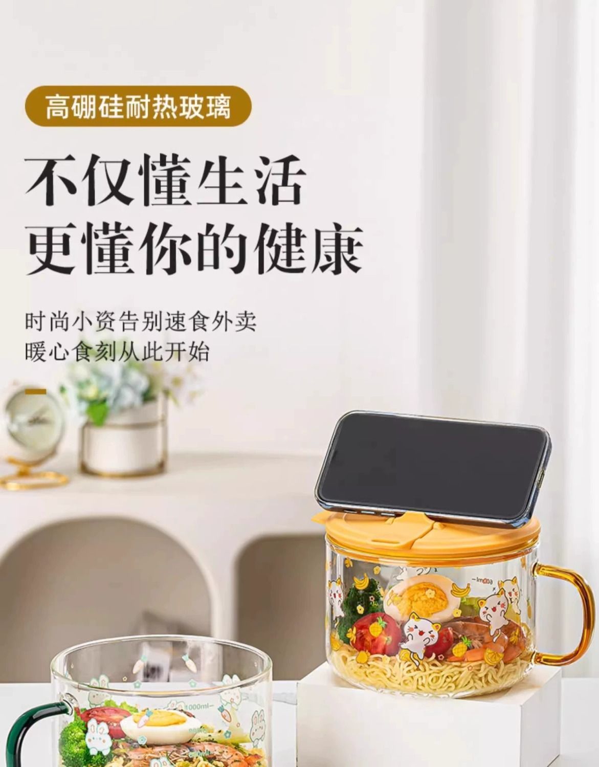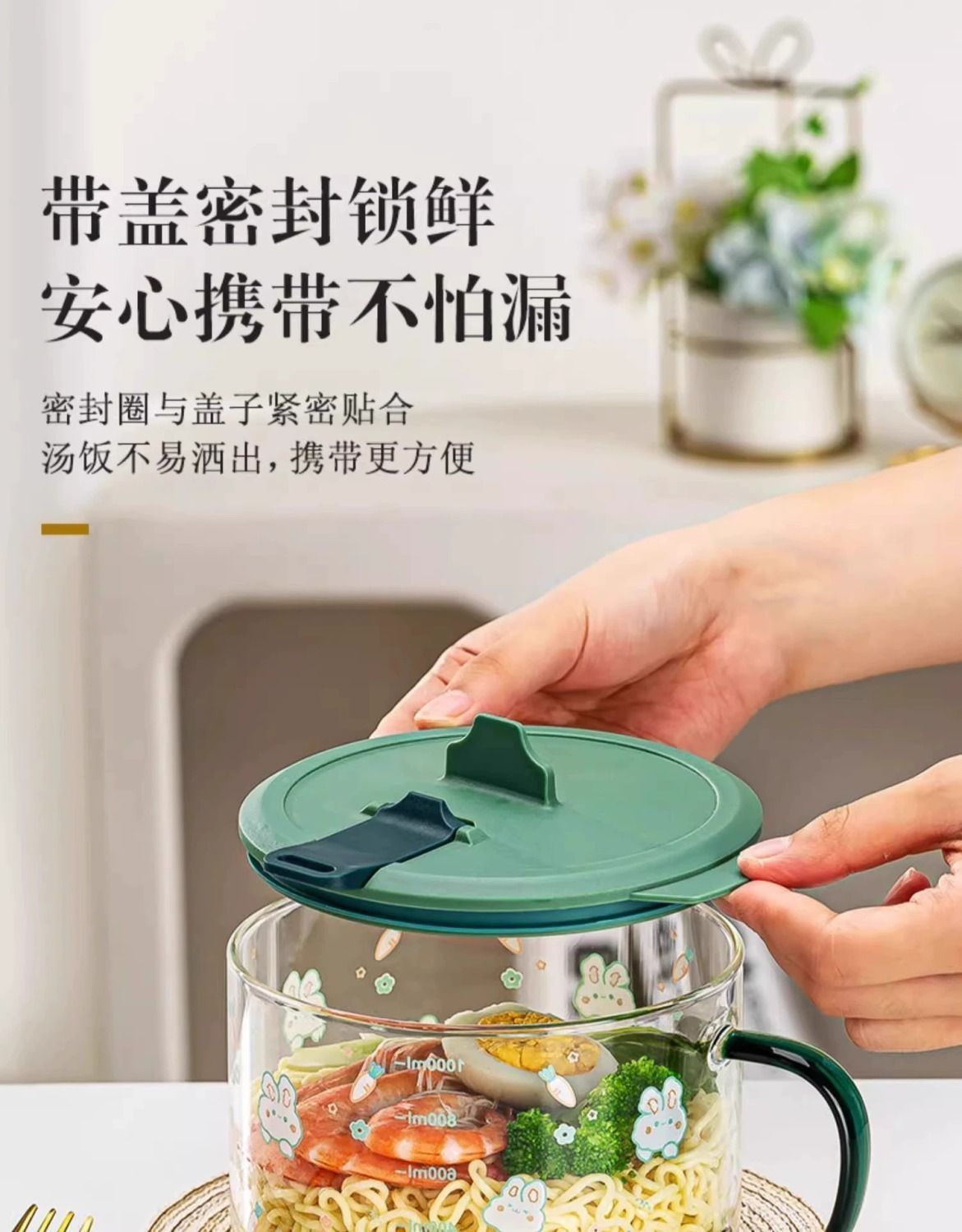 공장 직판 기숙사 유리그릇 학생 뚜껑이 있는 라면그릇 고온 방지 손잡이 라면 직장인 도시락통스토어 가기
