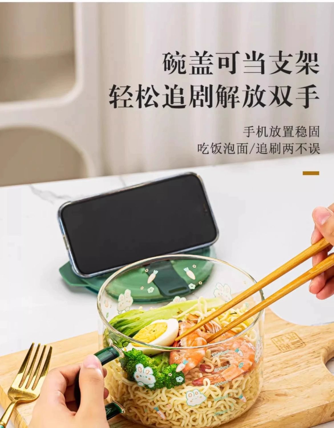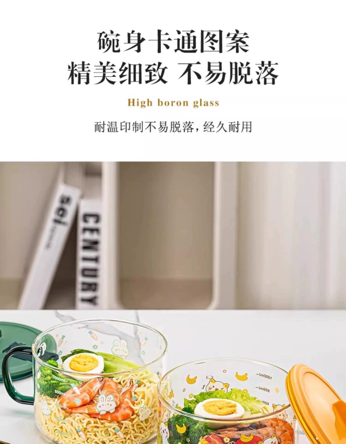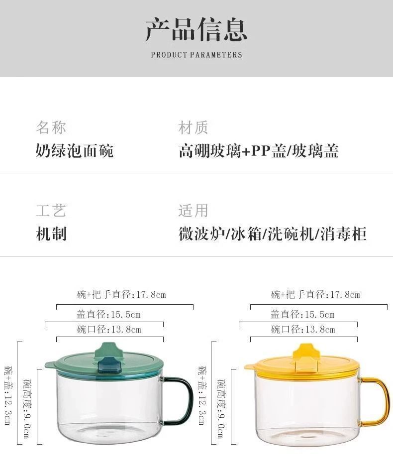 공장 직판 기숙사 유리그릇 학생 뚜껑이 있는 라면그릇 고온 방지 손잡이 라면 직장인 도시락통