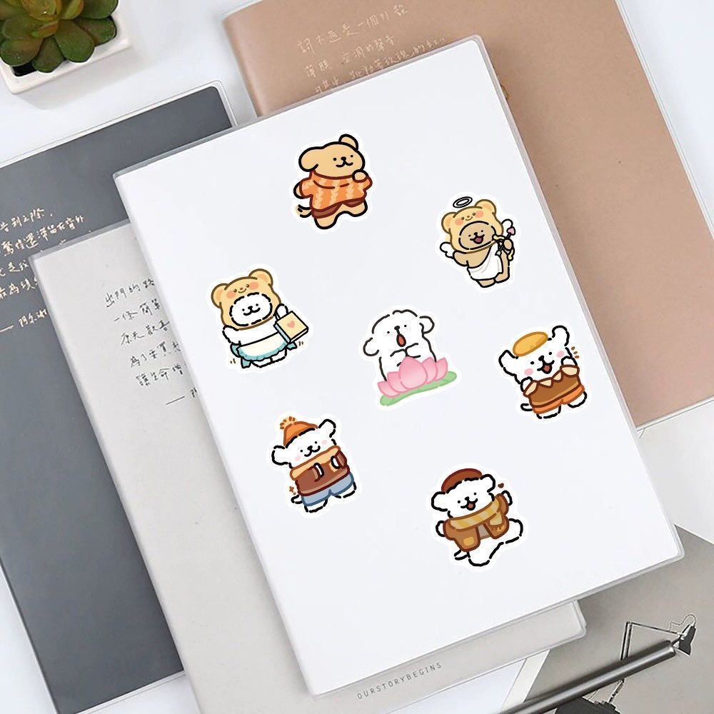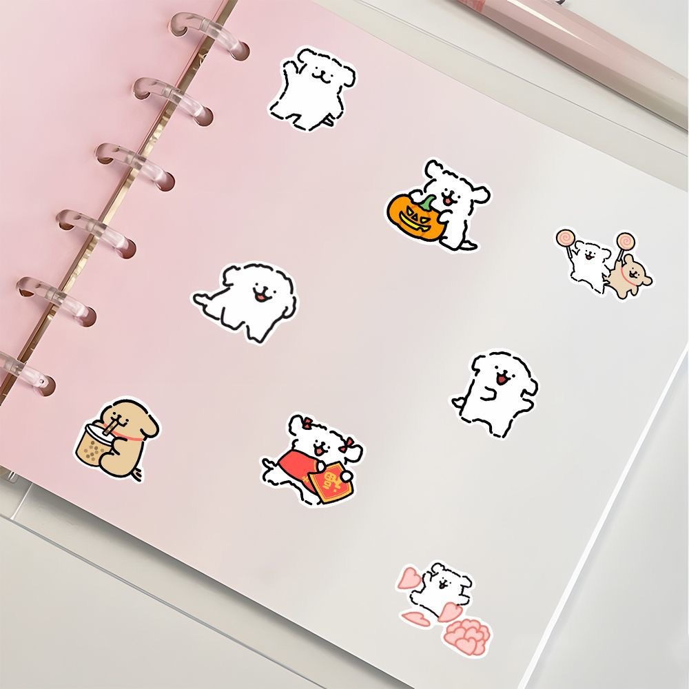 100 마르티즈 만화 귀여운 라인 강아지 표현 핸드북 스티커 휴대 전화 장식 diy 스티커 방수