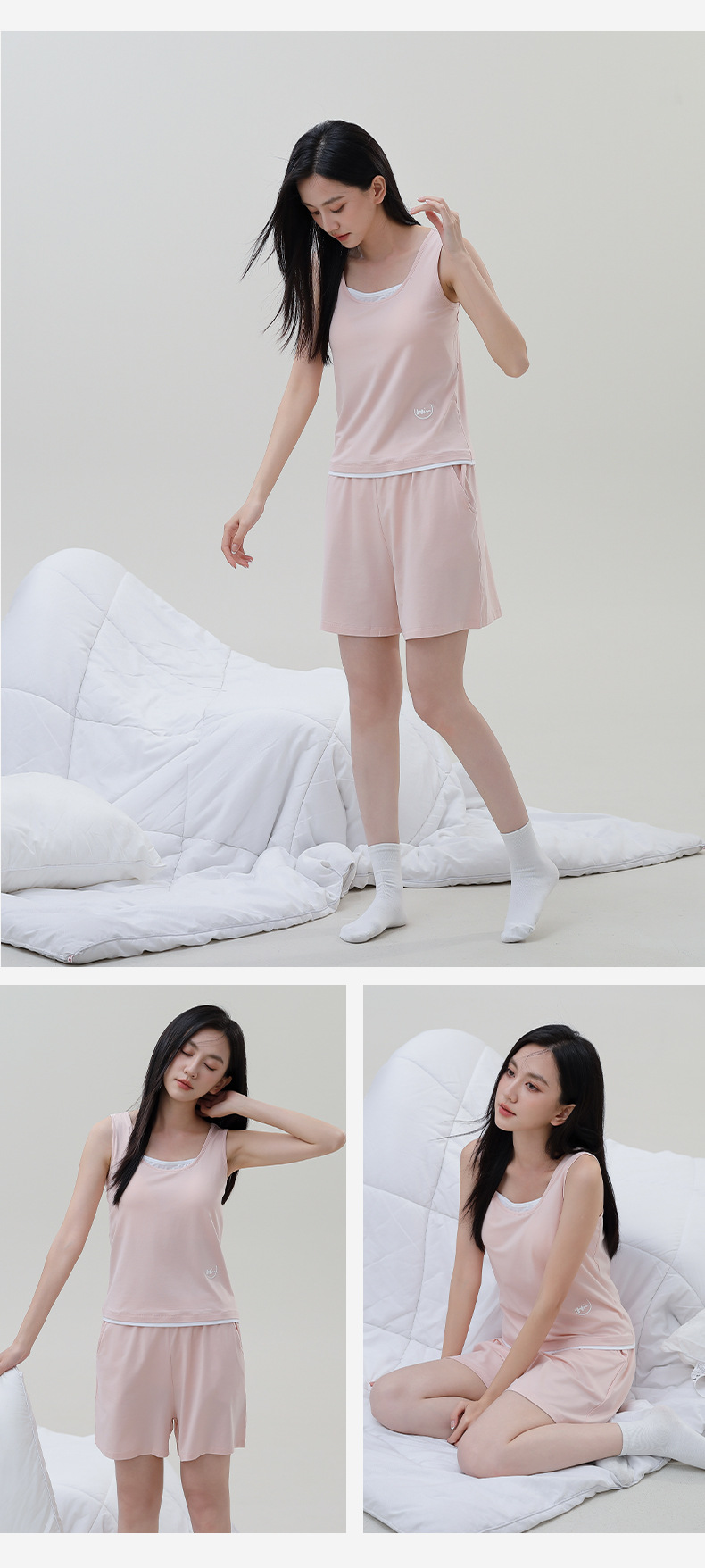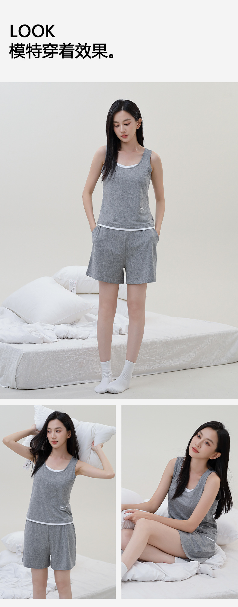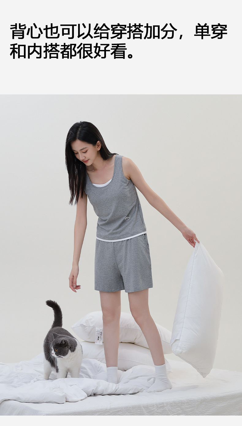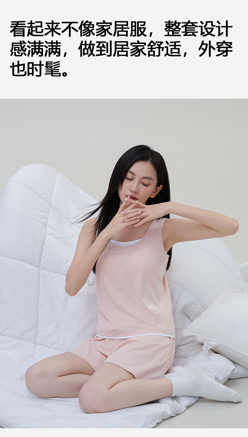여름 여성 홈웨어 세트 랑징 모달 잠옷 여성용 조끼 가슴 패드가 있는 투피스 통기성 반팔 상의스토어 가기