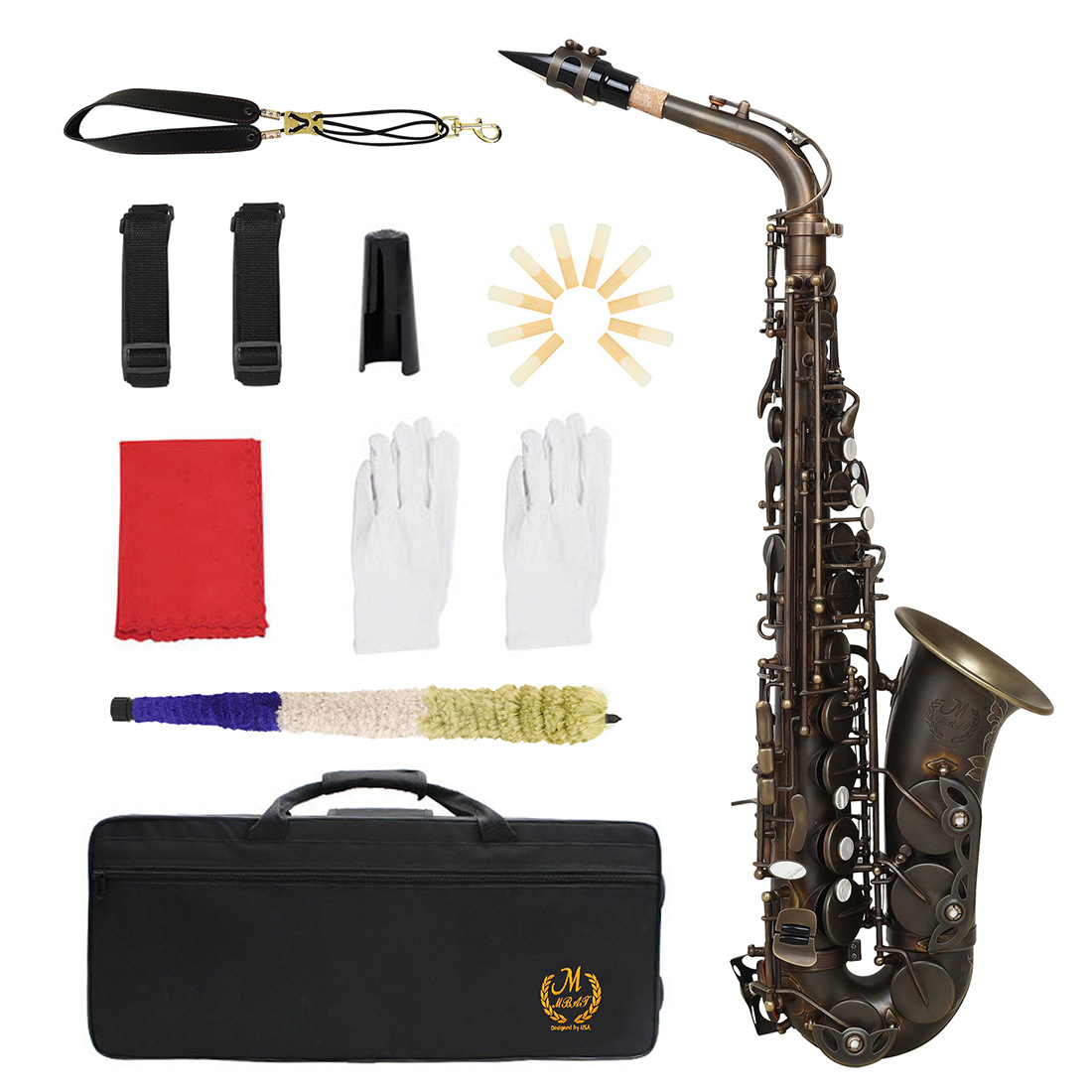 产品名称:MBAT美贝特中音萨克斯降E调黄铜管体鲍鱼壳按键磨砂工艺复古黄铜精品(布盒款+标配)