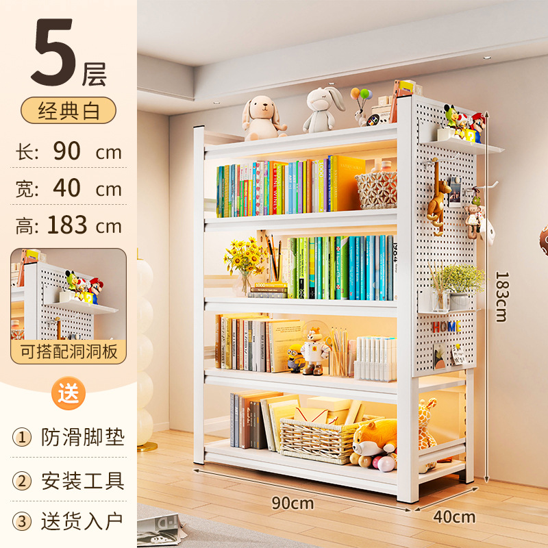홀 보드 스틸 책장 바닥 스토리지 랙 홈 어린이 도서 스토리지 랙 거실 벽 멀티 레이어 스토리지 랙