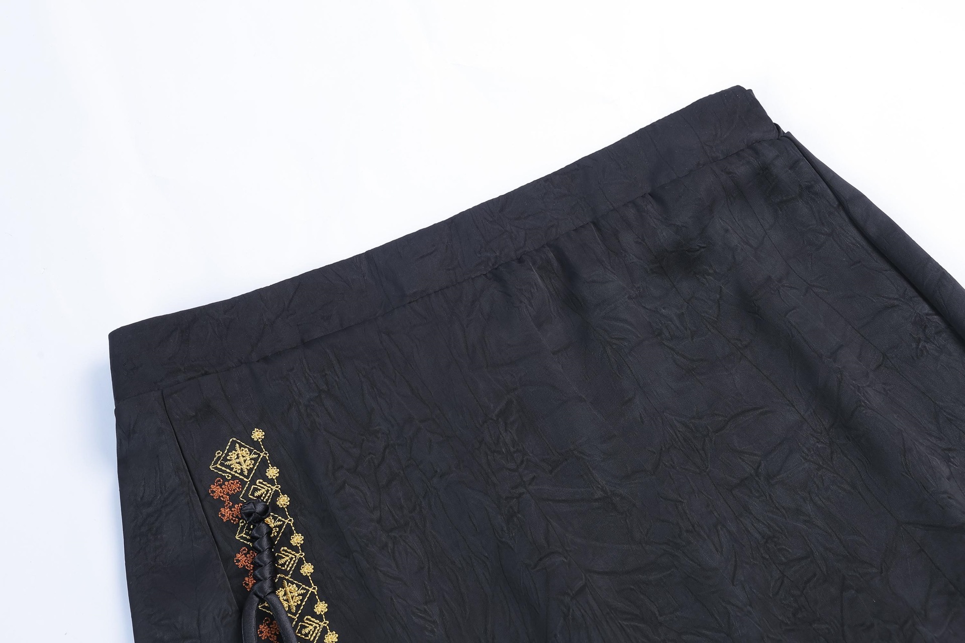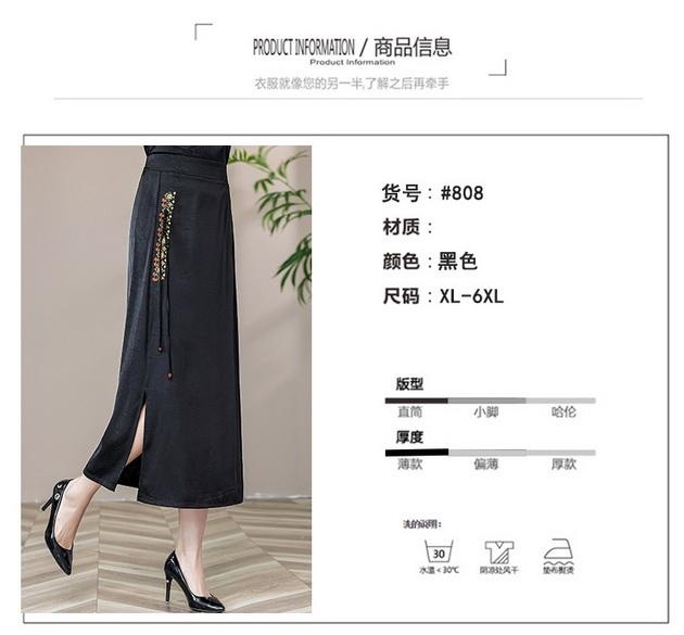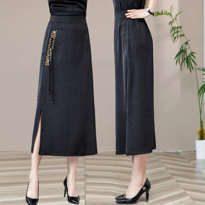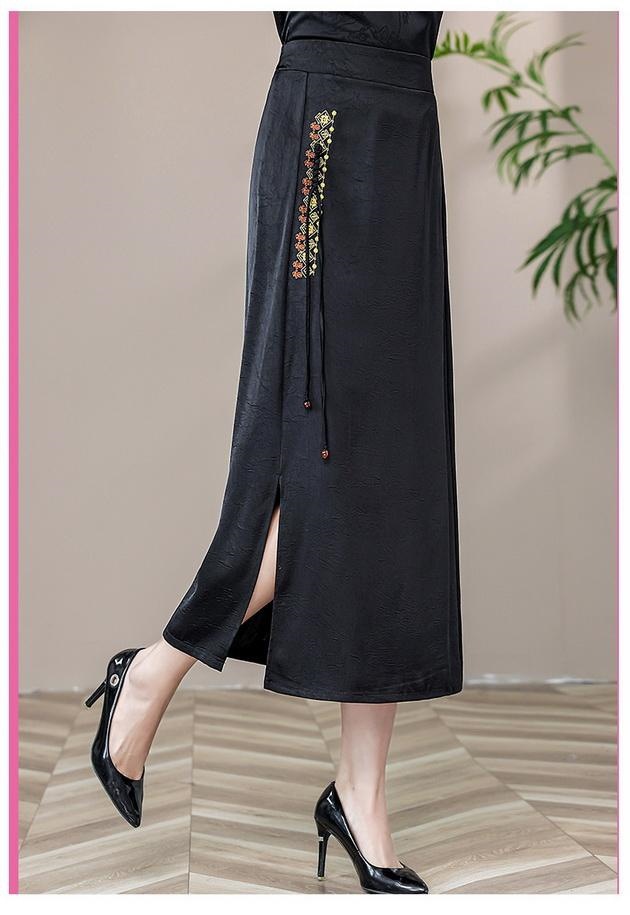 새로운 중국 스타일 복고풍 치파오 스커트 중국 스타일 아세테이트 새틴 자카드 스트레이트 뉴 봄 여름 슬릿 자수 스커트
