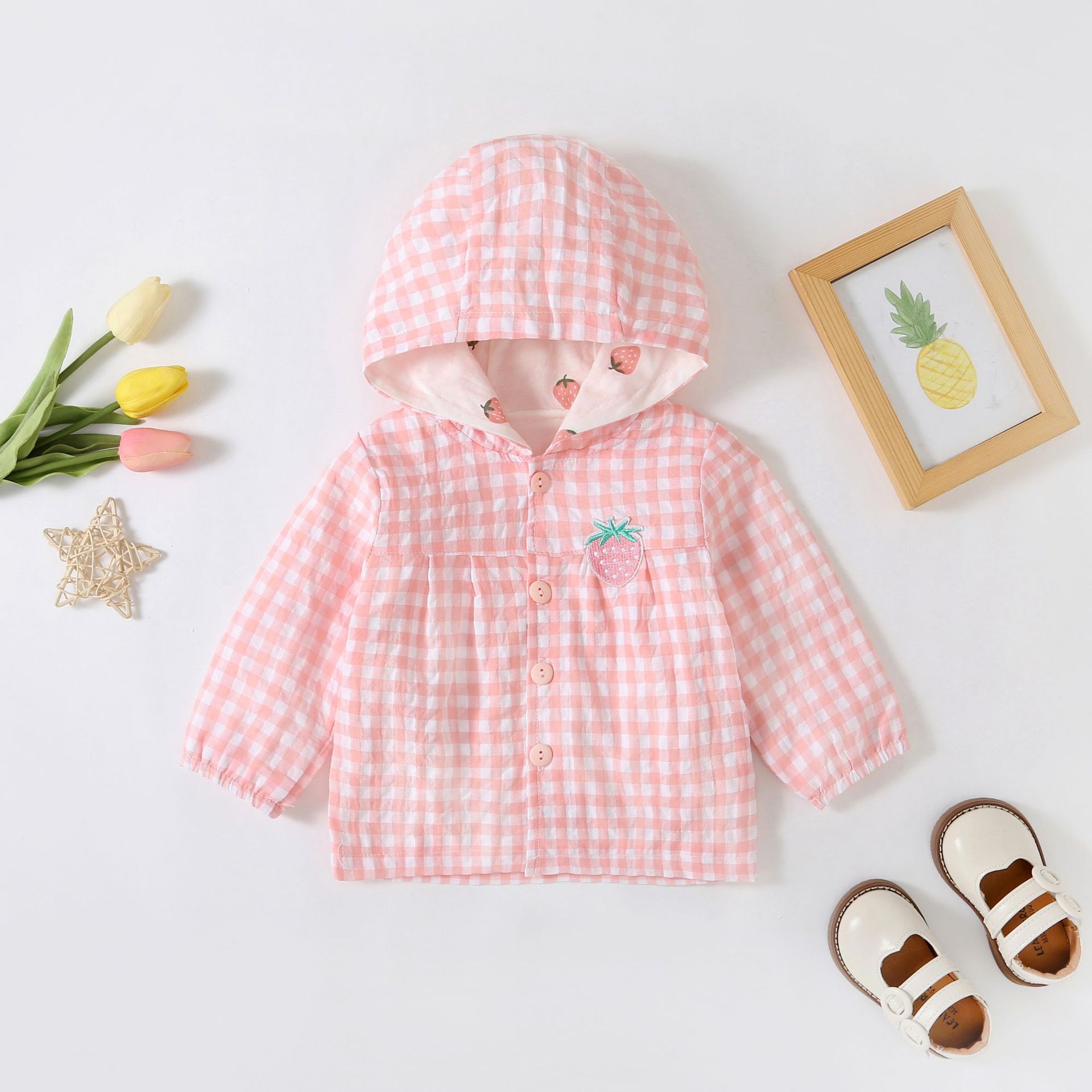 어린이 태양 보호 면화 귀여운 새 아기 봄, 가을 격자 무늬 카디건 남성과 여성 ins 스타일 아동복