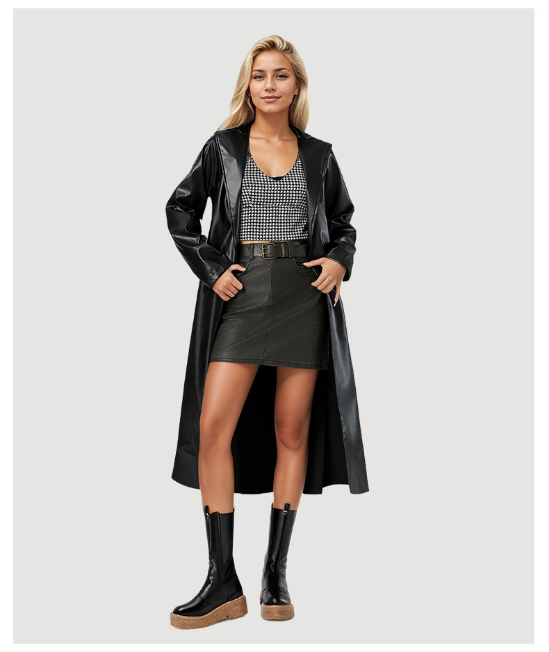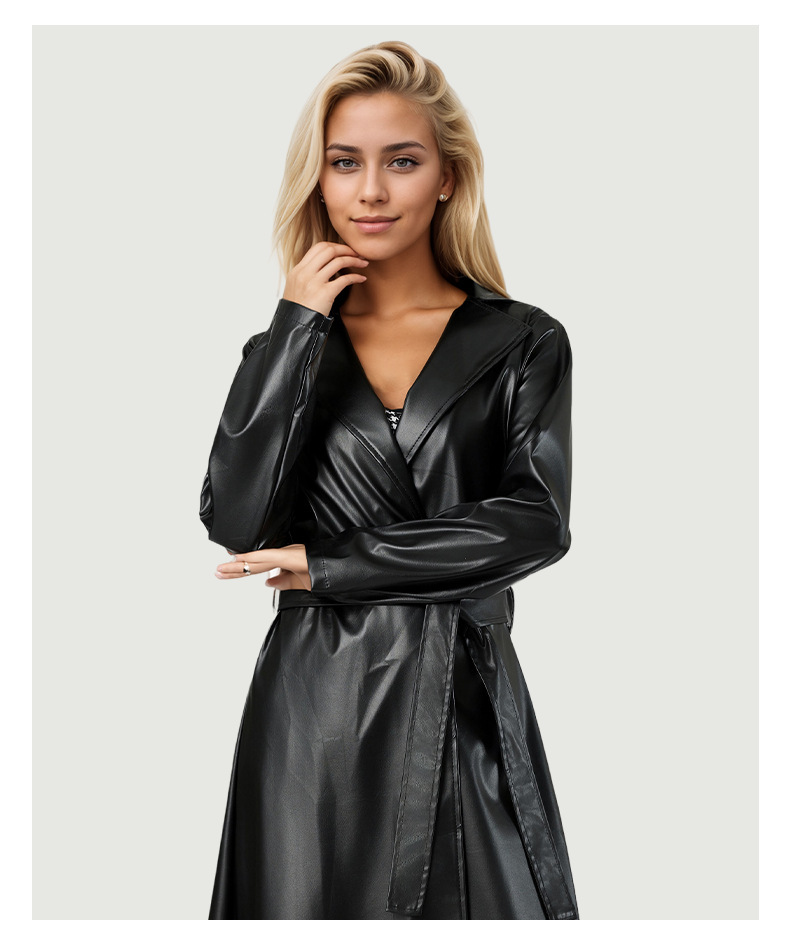 2025 엑스트라 롱 목욕 가운 윈드 브레이커 봄, 가을 주름 방지 패션 여성 가죽 코트 크로스 보더 가죽 코트 여성 자켓 유럽과 미국 스타일스토어 가기