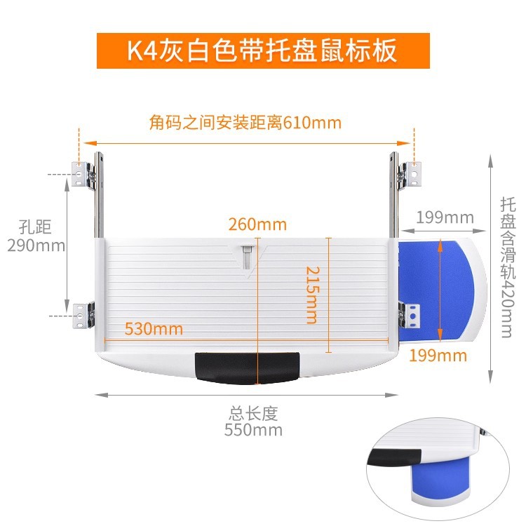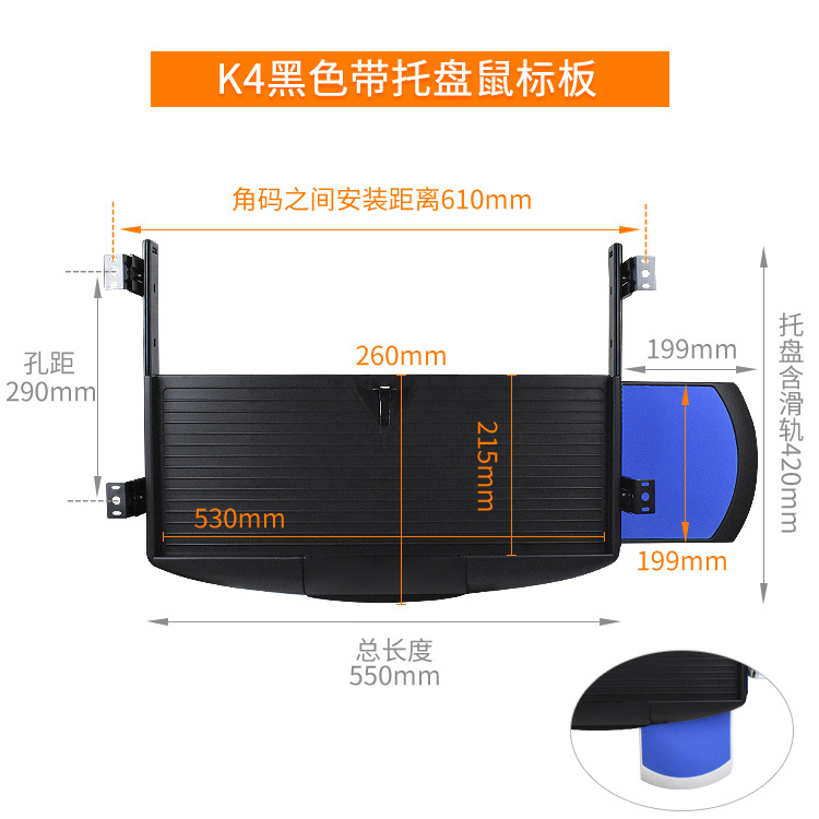 사무실 컴퓨터 키보드 트레이 트랙 서랍 키보드 랙 컴퓨터 책상 슬라이드 레일 교수형 트레이 브래킷 두꺼운스토어 가기
