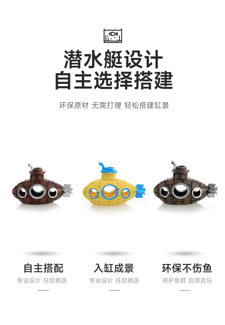 심해 잠수함 수족관 수조 조경 장식 귀여운 만화 크리 에이 티브 장식품 물고기 집은 산소 펌프에 연결할 수 있습니다스토어 가기