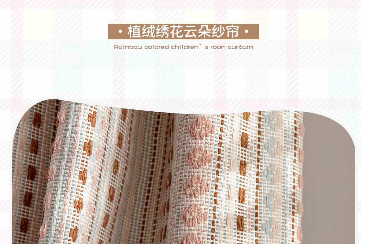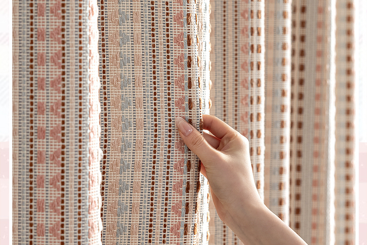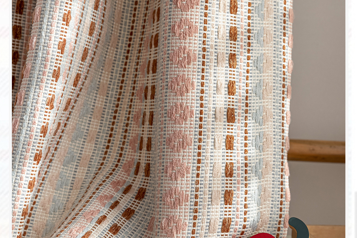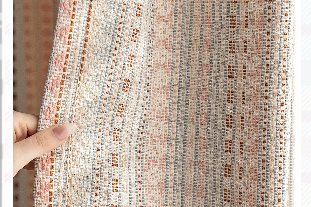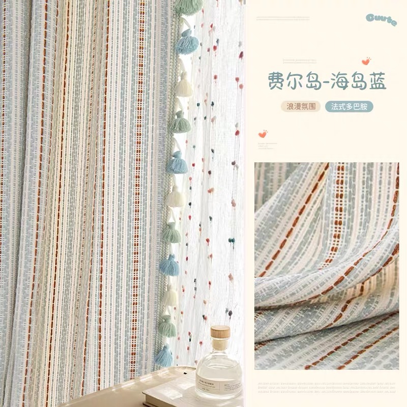 2025 새로운 도파민 컬러 커튼 코튼과 린넨 원사 염색 페어 아일 핑크 스트라이프 어린이 방 소녀 침실 베드 창스토어 가기