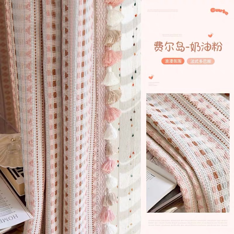 2025 새로운 도파민 컬러 커튼 코튼과 린넨 원사 염색 페어 아일 핑크 스트라이프 어린이 방 소녀 침실 베드 창