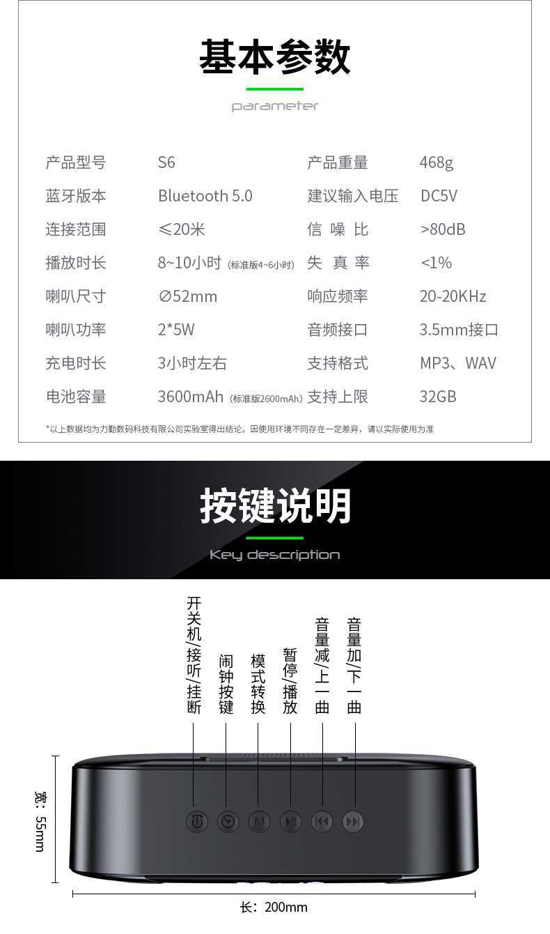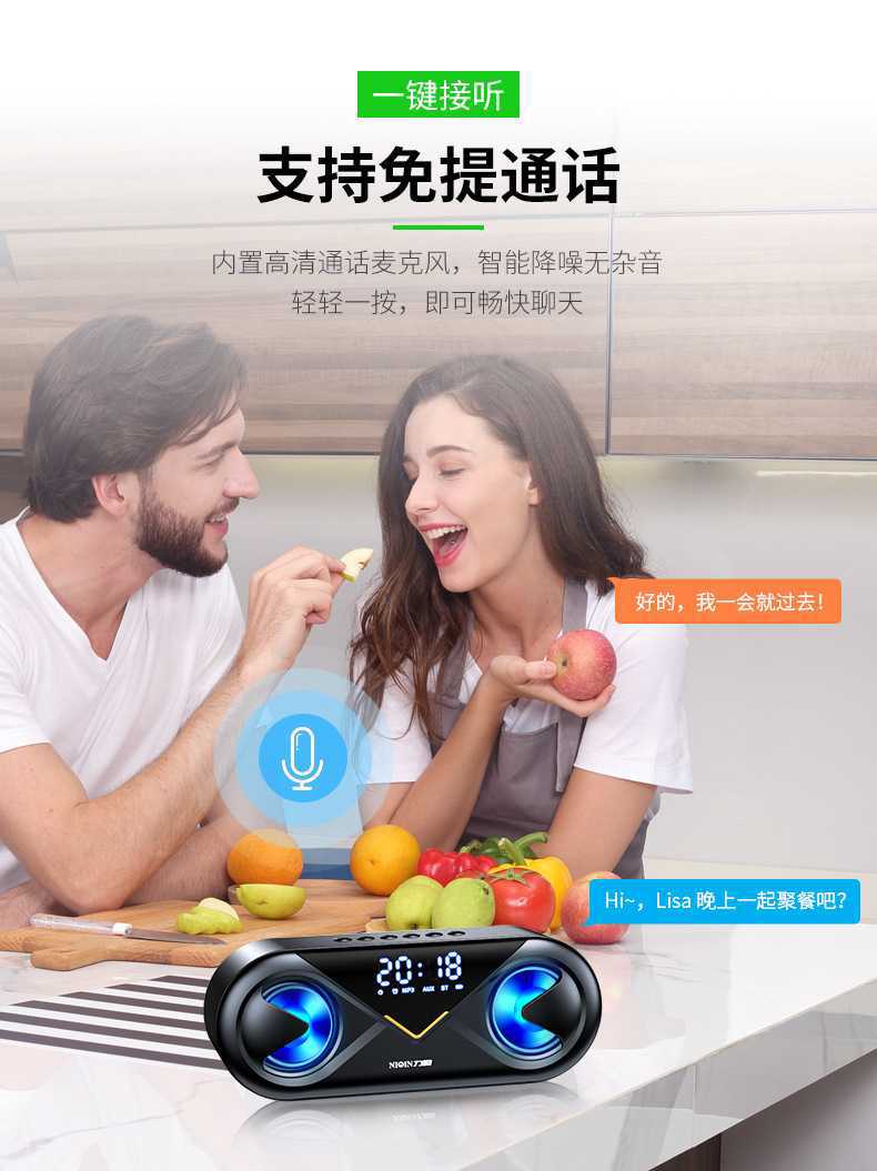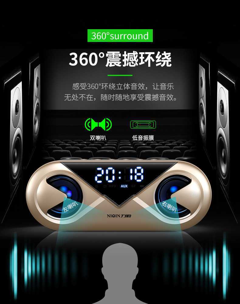 Liqin 무선 블루투스 스피커 홈 알람 시계 오디오 듀얼 스피커 대용량 휴대 전화 U 디스크 카드 서브 우퍼스토어 가기