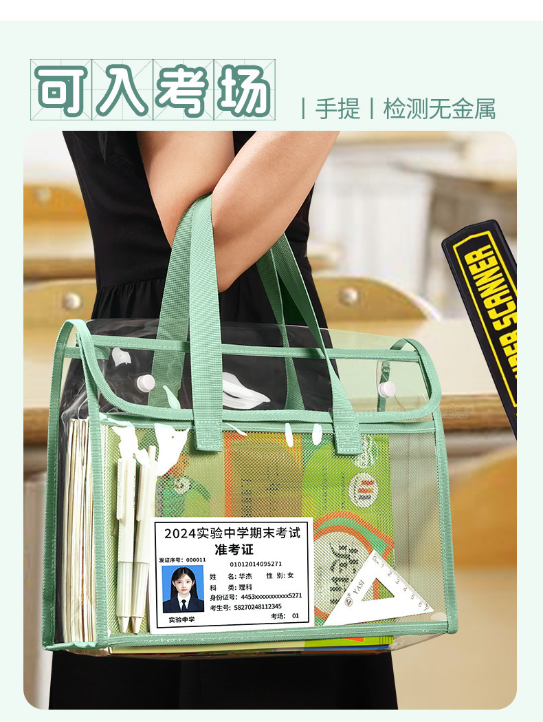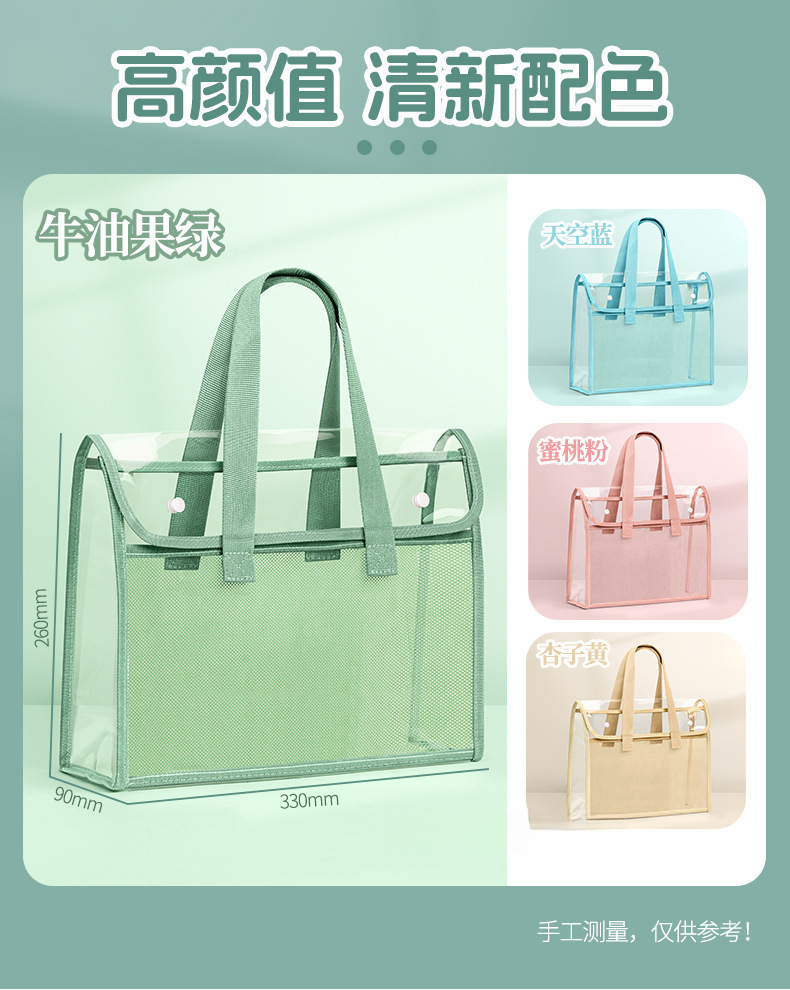 두꺼운 핸드백 문서 가방 A4 투명 방수 및 내구성 학생 시험 과외 시험지 숙제 도서 보관 가방스토어 가기