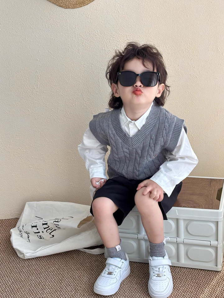 소년 봄, 가을 정장 2025 새로운 어린이 스웨터 아기 소녀 패션 대학 스타일 흰색 셔츠와 바지스토어 가기