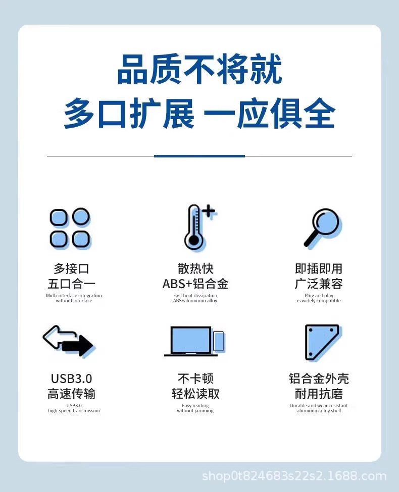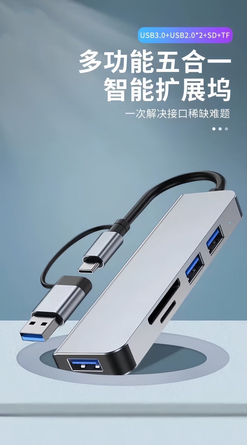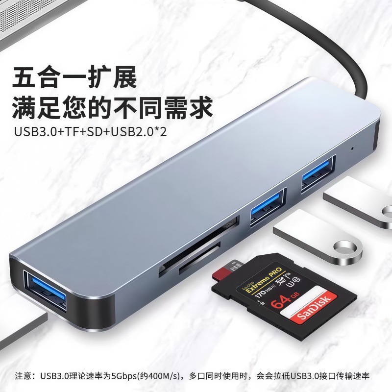 국경 간 5-in-1 도킹 스테이션 유형-c USB-3.0 SD TF 카드 리더기 다기능 허브 허브스토어 가기