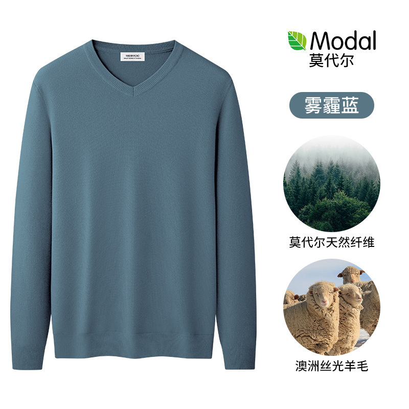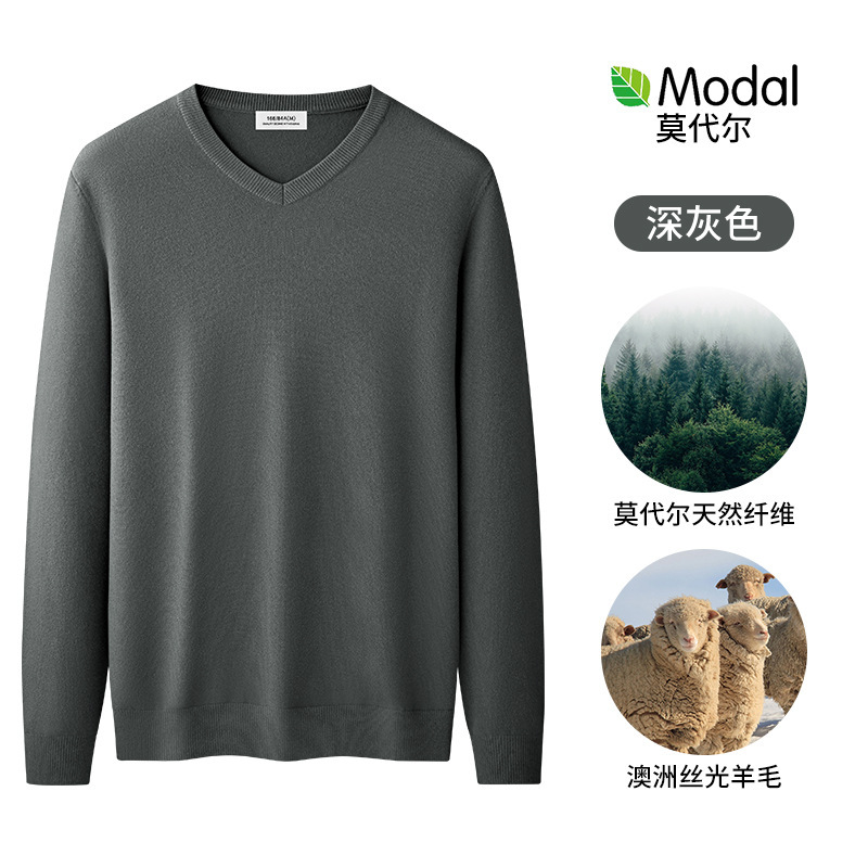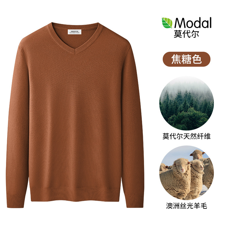 울 모달 브이넥 스웨터 남성 가을 겨울 스웨터 따뜻한 긴팔 바닥 셔츠 남성용 이너웨어