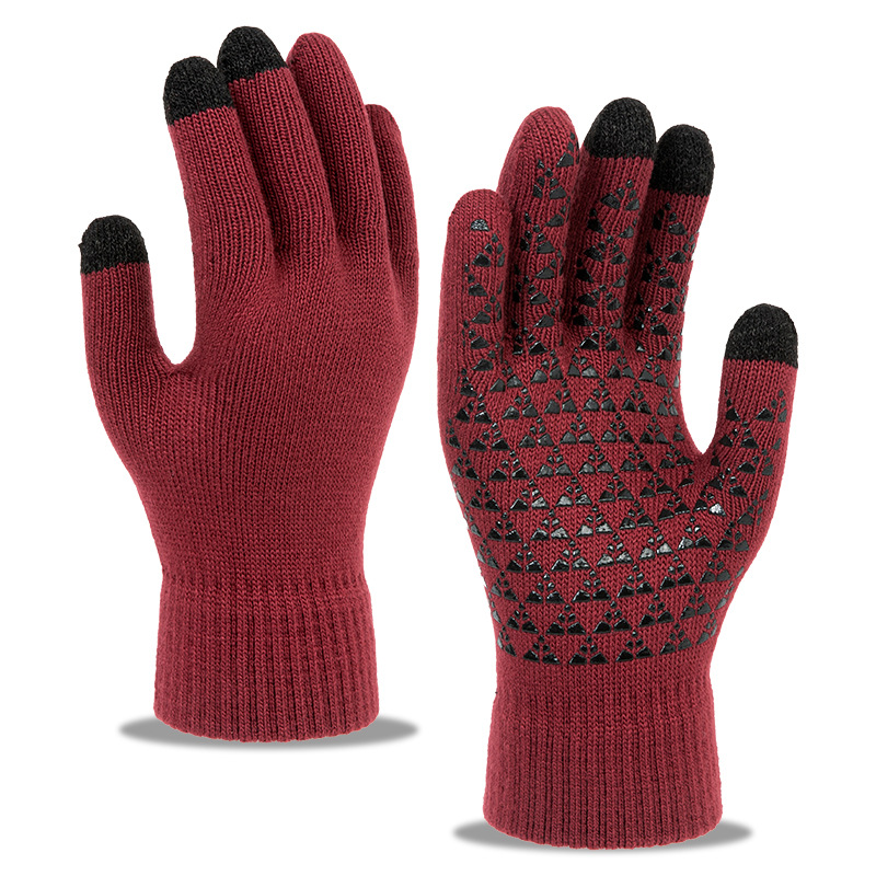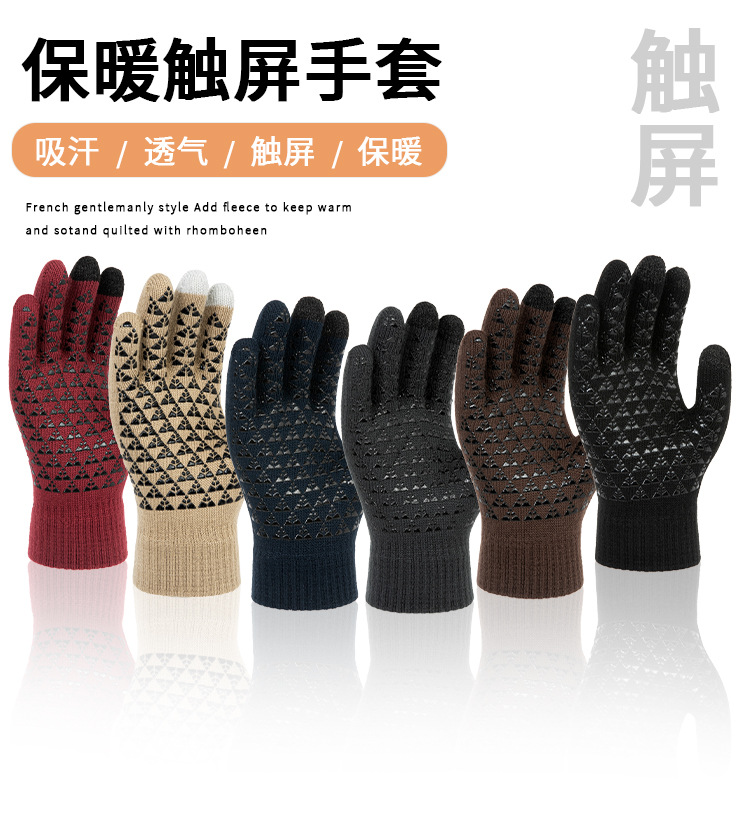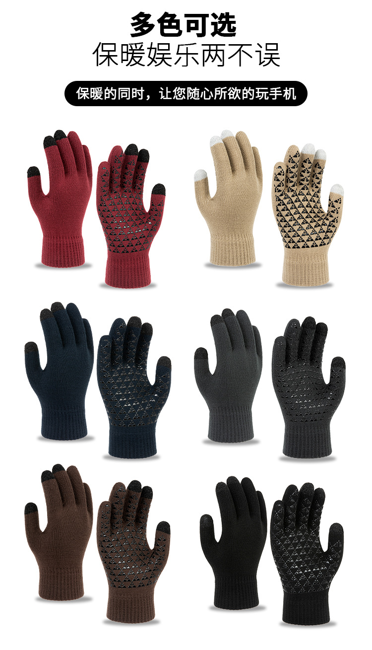가을 겨울 남성과 여성을 위한 크로스보더 니트 장갑, 야외 두꺼운 벨벳 사이클링 방한 및 미끄럼 방지 오프셋 인쇄 따뜻한 터치 스크린 장갑