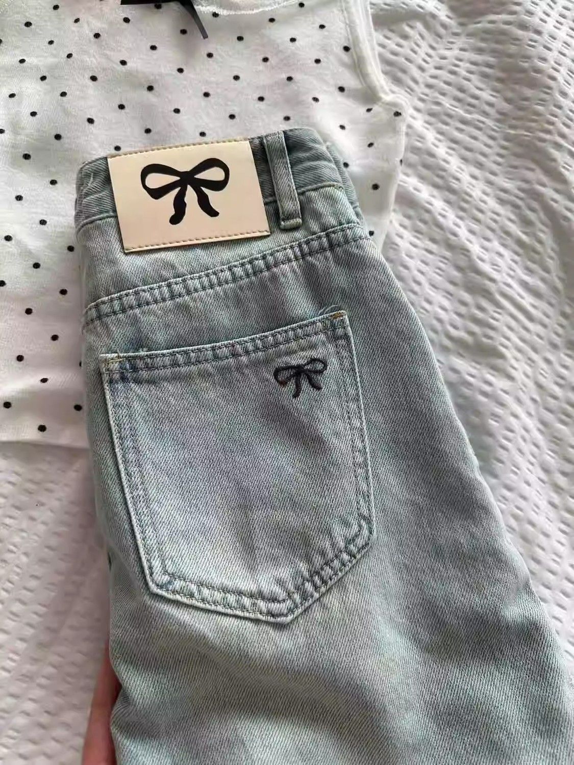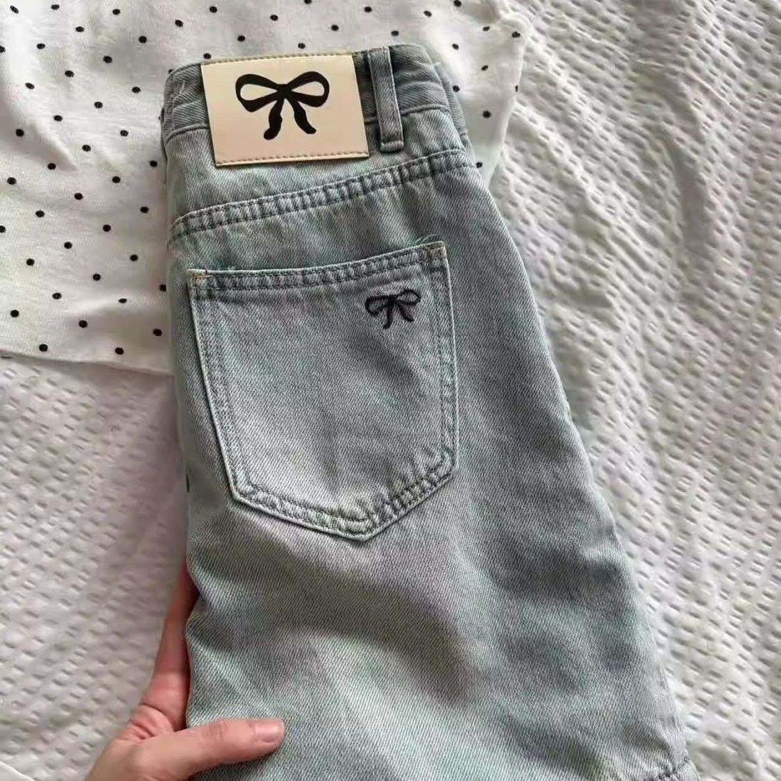 여름 핫걸을 위한 밝은 색상의 복고풍 리본 자수 데님 스커트, 엉덩이를 덮는 미니 스커트, A라인 슬리밍 스커트