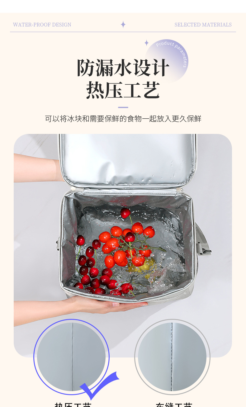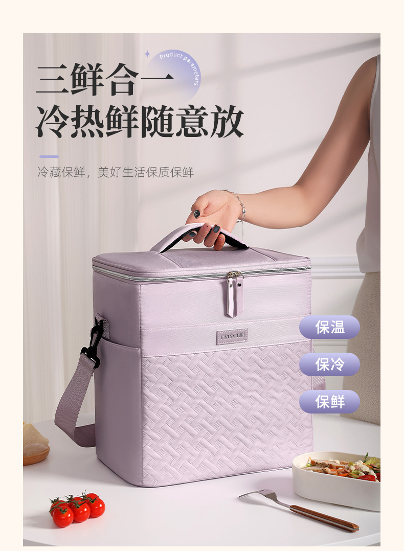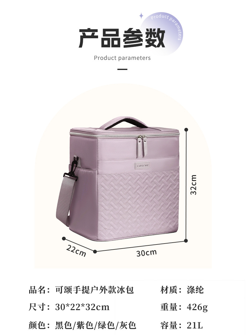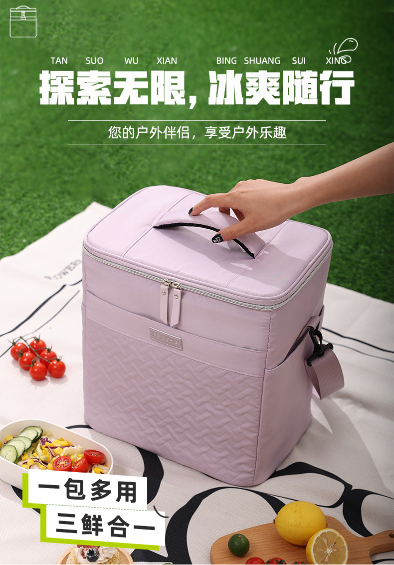 Xiaobudian의 새로운 크로아상 휴대용 야외 아이스백, 대용량, 고급스러운 원숄더 크로스바디 피크닉 잠금 신선 보온 가방